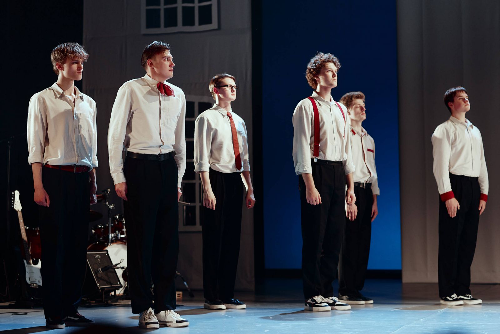 В ролях: Артем Ляшенко, Руслан Чагилов, Ян Сибряев, Арсений Васильевых, Арсений Никитин, Тимур Водопьянов, Андрей Замятин, Максим Богатырев, Василий Бобров, Ляля Анпилогова, Кристина Гаспарян и другие. Кстати, приятным бонусом станет музыкальное оформление спектакля — его тоже создавали молодые артисты, занятые в постановке.