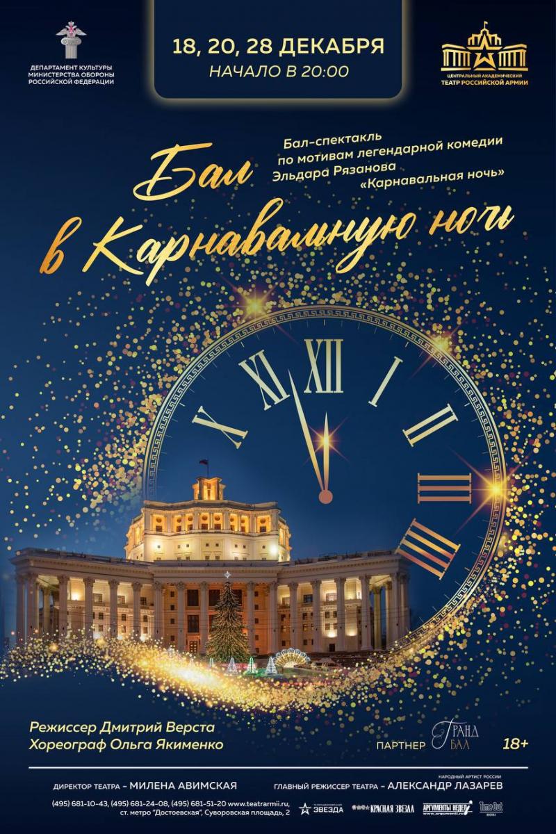 Театр Армии приглашает на "Карнавальную ночь" 18, 20 и 28 декабря. Начало Бала в 20.00.