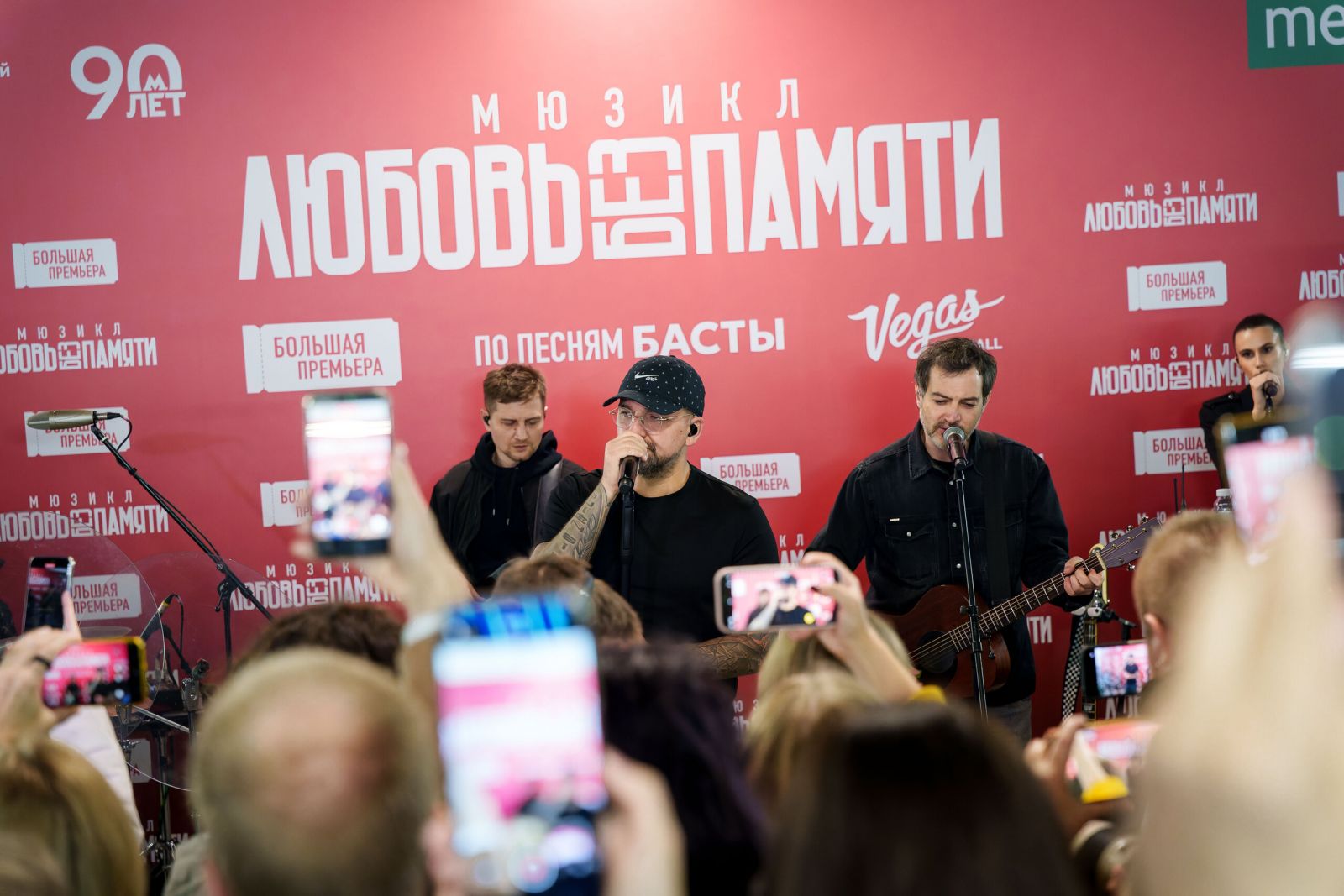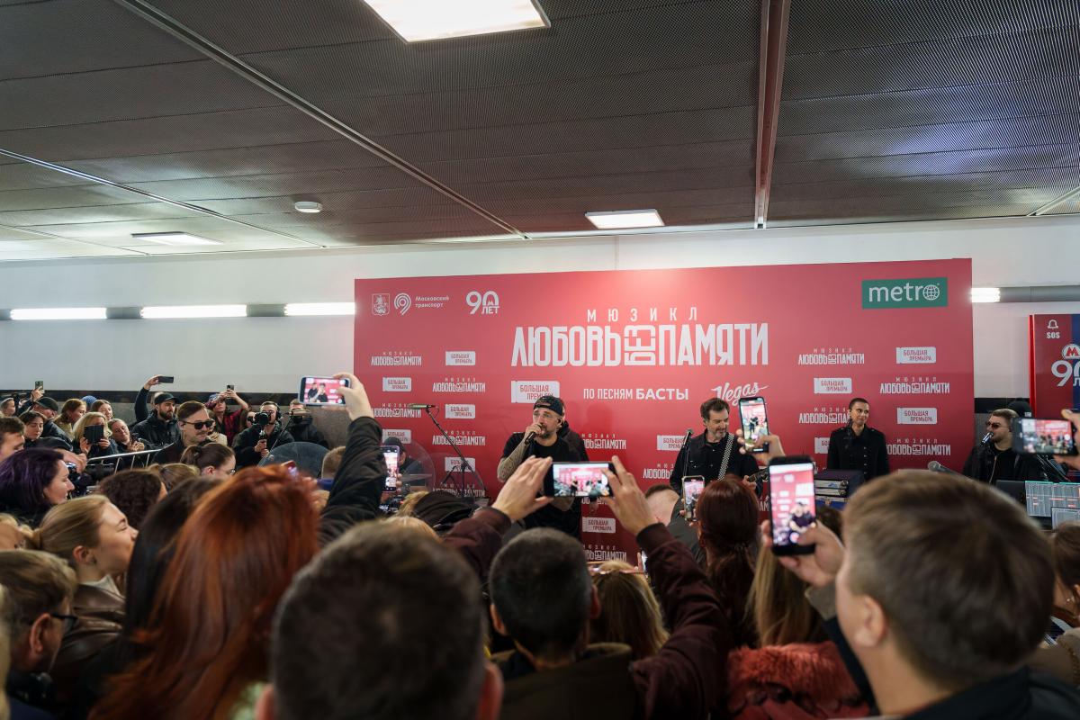 В вестибюле станции метро, рядом с которой расположен Вегас Сити Холл, Баста исполнил 4 трека: заглавный сингл спектакля «Любовь без памяти», «Сансара», «Выпускной (Медлячок)», что вошли в мюзикл, и «На заре». Как и на большом концерте, Басте аккомпанировал полный состав из семи музыкантов, многие из которых приняли участие в работе над мюзиклом. На свое выступление артист приехал на метро — тем же маршрутом, которым на мюзикл будет добираться большинство зрителей.