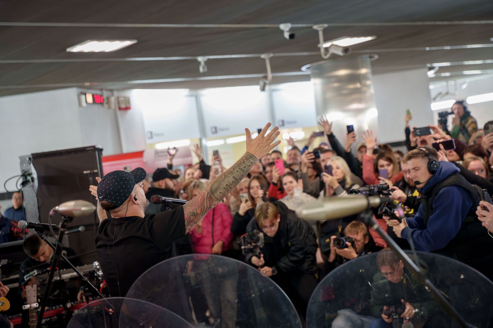 Концерт артиста собрал полный вестибюль слушателей. Случайные зрители — пассажиры метро — подпевали любимым хитам Басты и фотографировались вместе с музыкантом.
