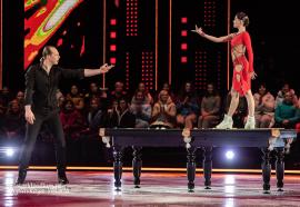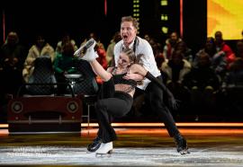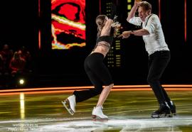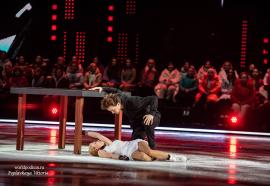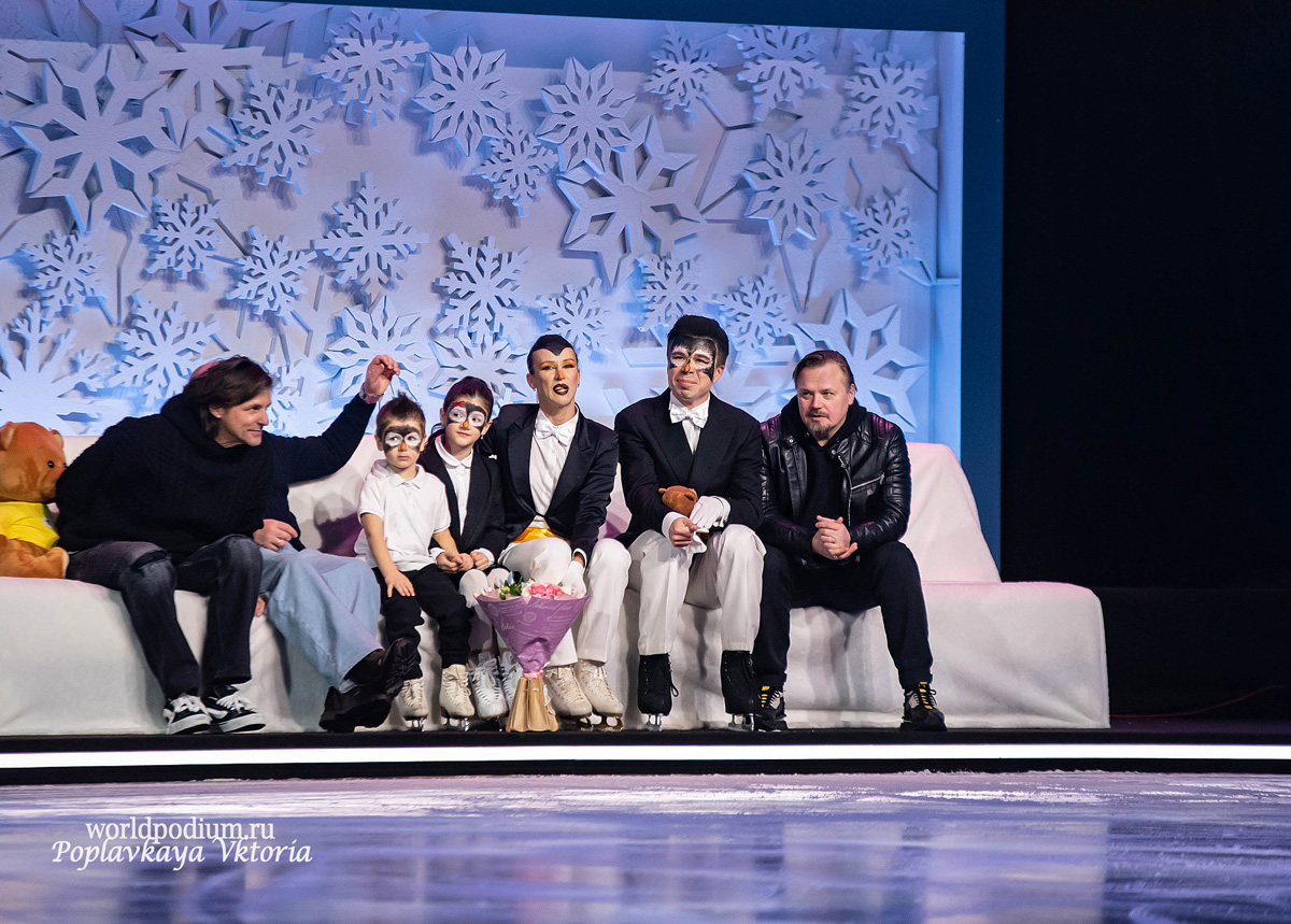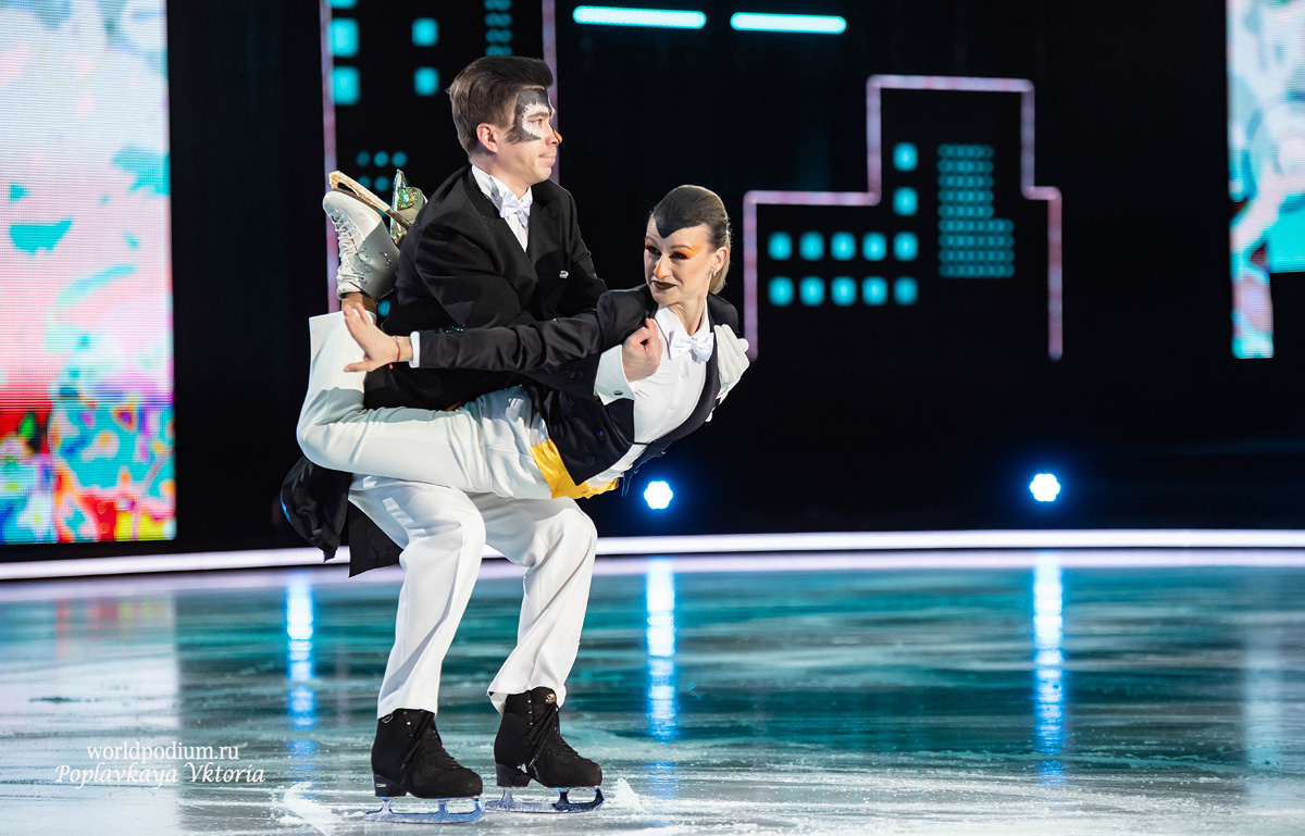 Татьяна Волосожар и Семён Елистратов предстали на льду в образах очаровательных и немного неуклюжих пингвинов – Игорь Оршуляк придумал для дуэта искромётный танец, который умилил всех присутствующих. Цветы маме подарили маленькие «пингвинятки» - дочка Анжелика и сын Теодор, что придало танцу особую трогательность и нежность.