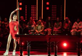 Елизавета Туктамышева в соблазнительном платье с пайетками и белых перчатках и Марк Рудаковский в брутальном костюме представили рандеву женщины и мужчины. Жаль, что были допущены технические помарки, но они не испортили впечатление.