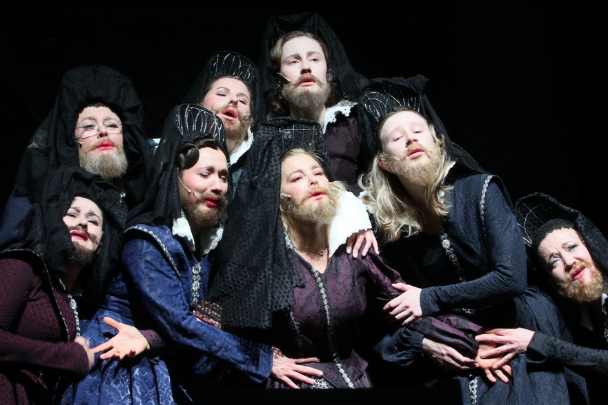 Из женской части постановки однозначно выделяется Ирина Пегова - Актриса 6, она же Карлик, Кот, Каторжница, Монахиня, Похоронщик. Пегова яркая, красивая, милая, женственная, чувственная - превосходна во всех смыслах этого слова. Ну и ее «фишка»  в постановке - перевоплощение в бородатую Принцессу Долориду, это незабываемо!