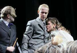 «Речь идет о театре формы, поэтому мы попытались сделать, может, даже преувеличенно, специально преувеличенно. Чересчур преувеличенно. Это будет такой визуально сложный технический спектакль», – говорил журналистам перед премьерой режиссер Николай Рощин.