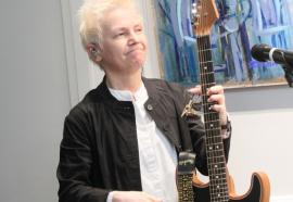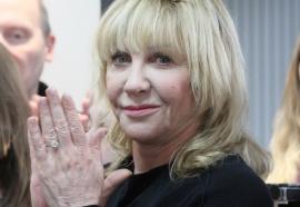 Поздравить легенду отечественной сцены и уникальную киноактрису пришли друзья юбилярши - поэт, музыкант, лидер группы «Сурганова и Оркестр» Светлана Сурганова и музыкант, соло-гитарист и сооснователь группы Валерий Тхай.