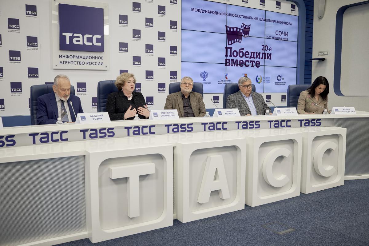 Пресс-конференция, посвященная программе юбилейного Международного кинофестиваля "Победили вместе" имени Владимира Меньшова, состоялась в пресс-центре ТАСС 22 октября 2025 года. Грандиозное событие пройдет в Сочи с 10 по 17 ноября.