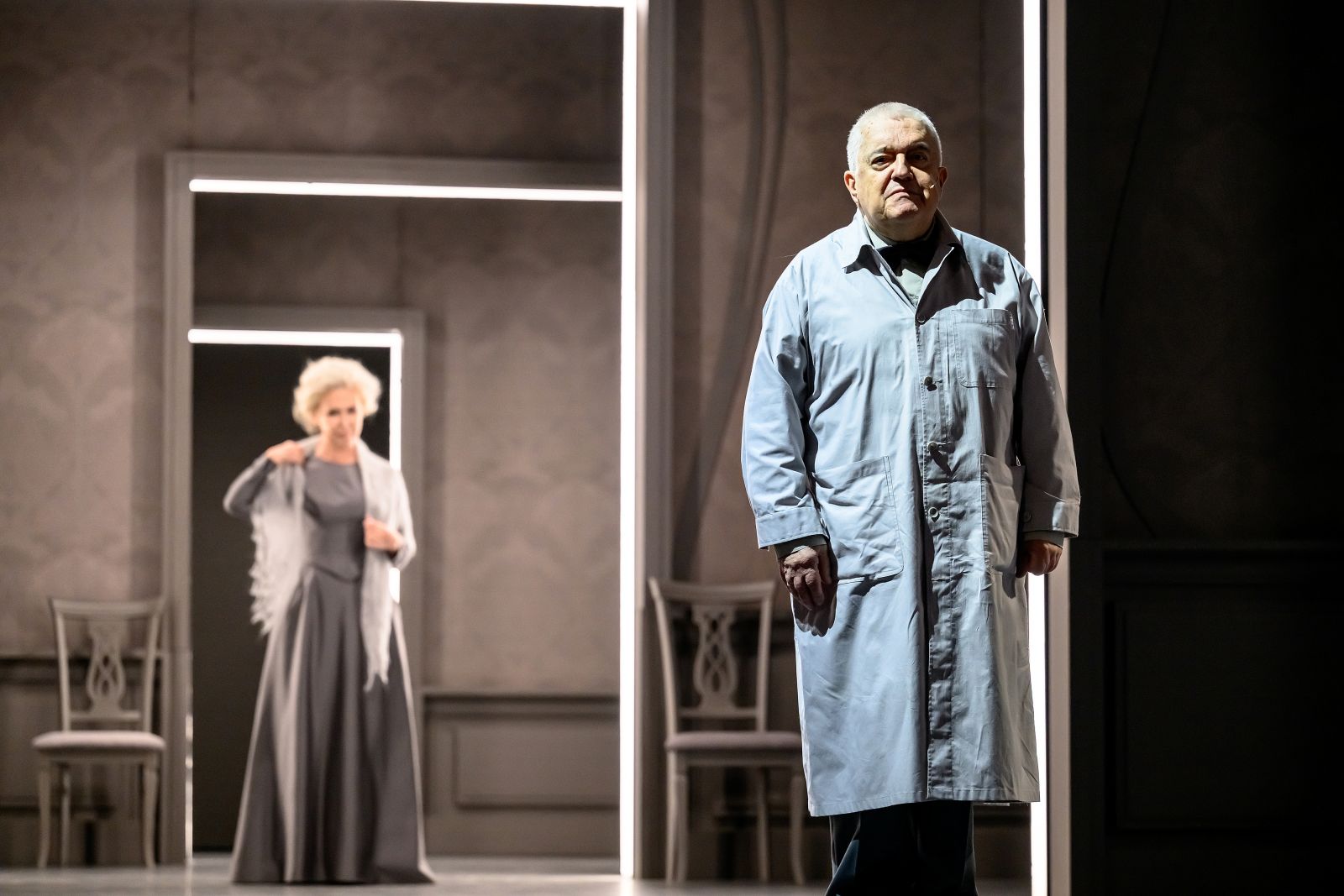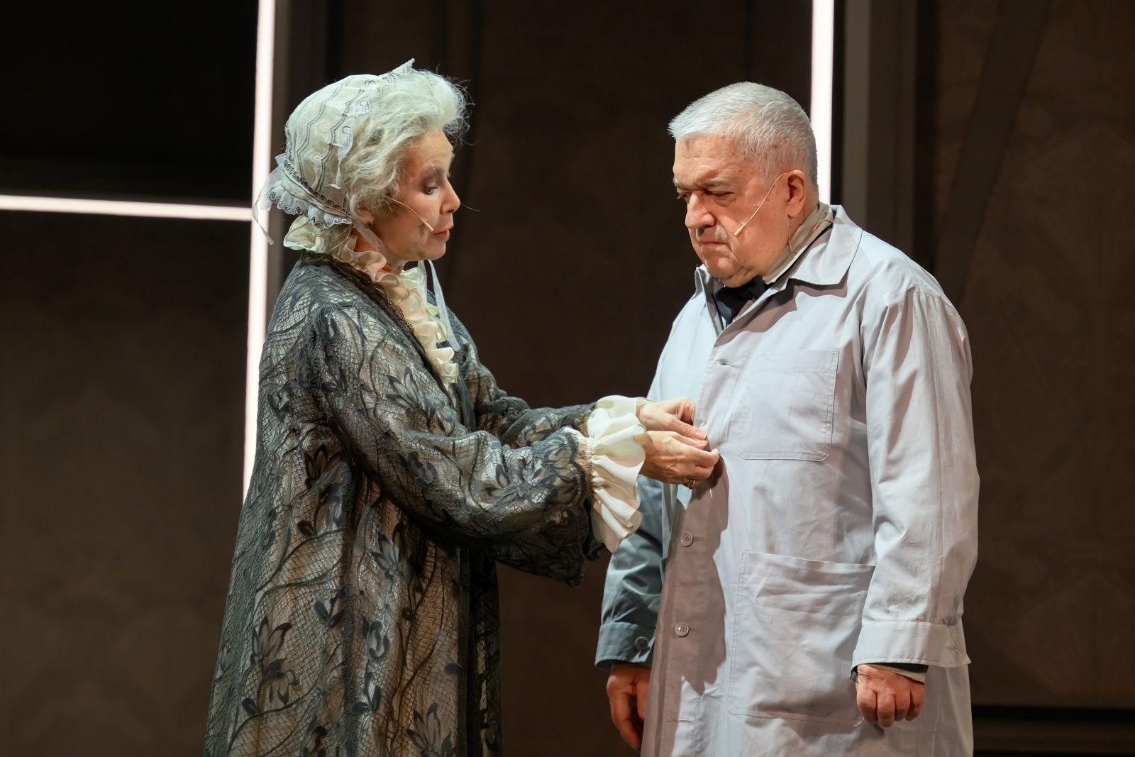 У Чехова повествование ведётся от лица Николая Степановича, а в спектакле Дениса Хуснияров происходит разделение – часть рассказа идёт от лица Варвары Андреевны.