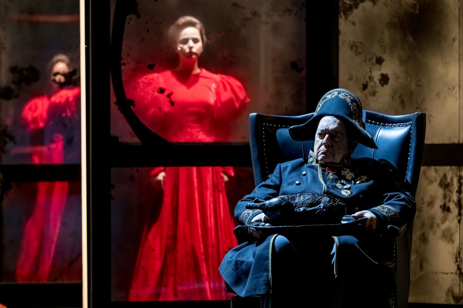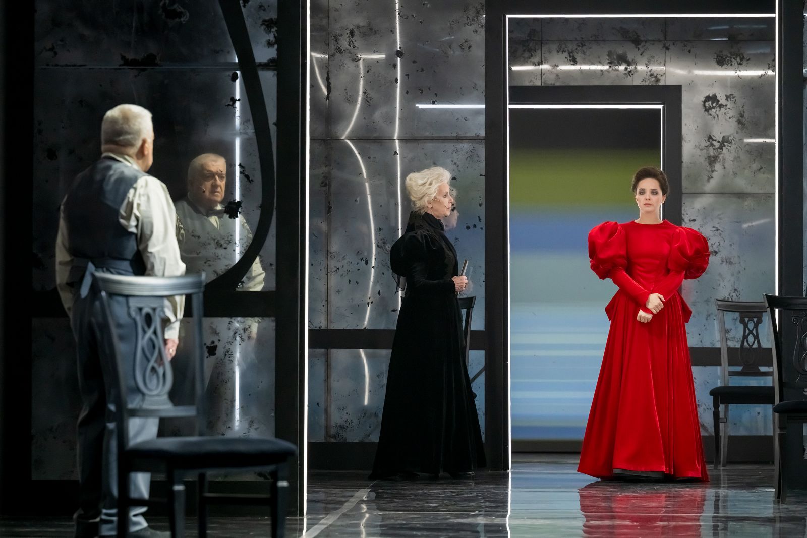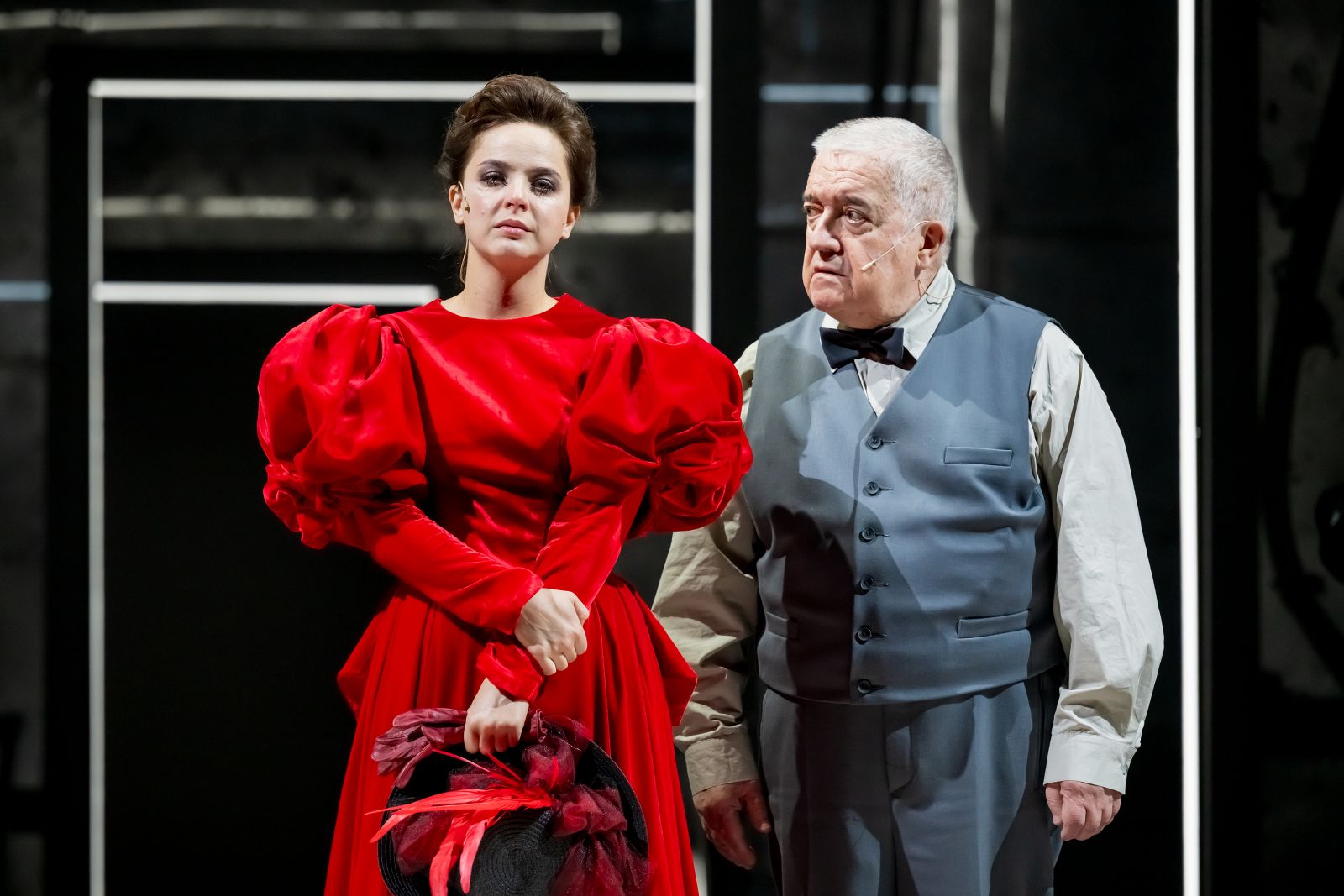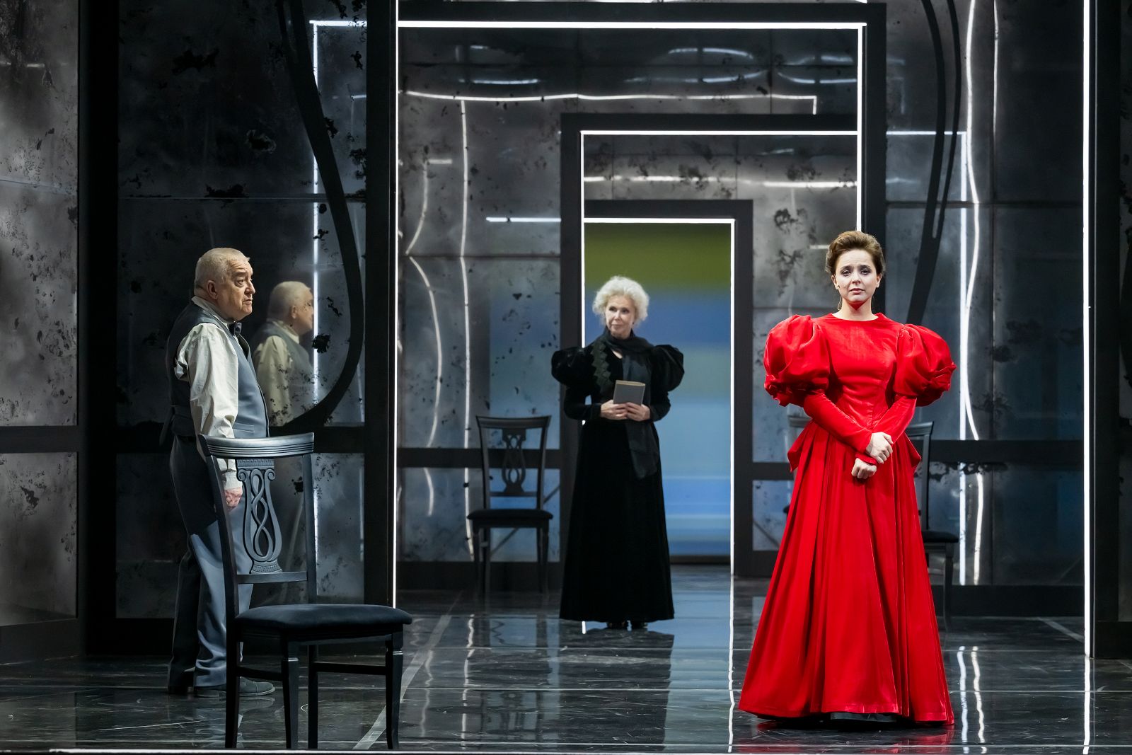 В эффектном красном платье героиня появляется во втором акте, словно вулкан страстей, и эта метафора очень подходит к порывистой героине, которую испепеляют её страдания и разочарования, разившиеся об айсберги иллюзий надежды и мечты, сгоревшие в пламени страстей чувства, желания и амбиции.