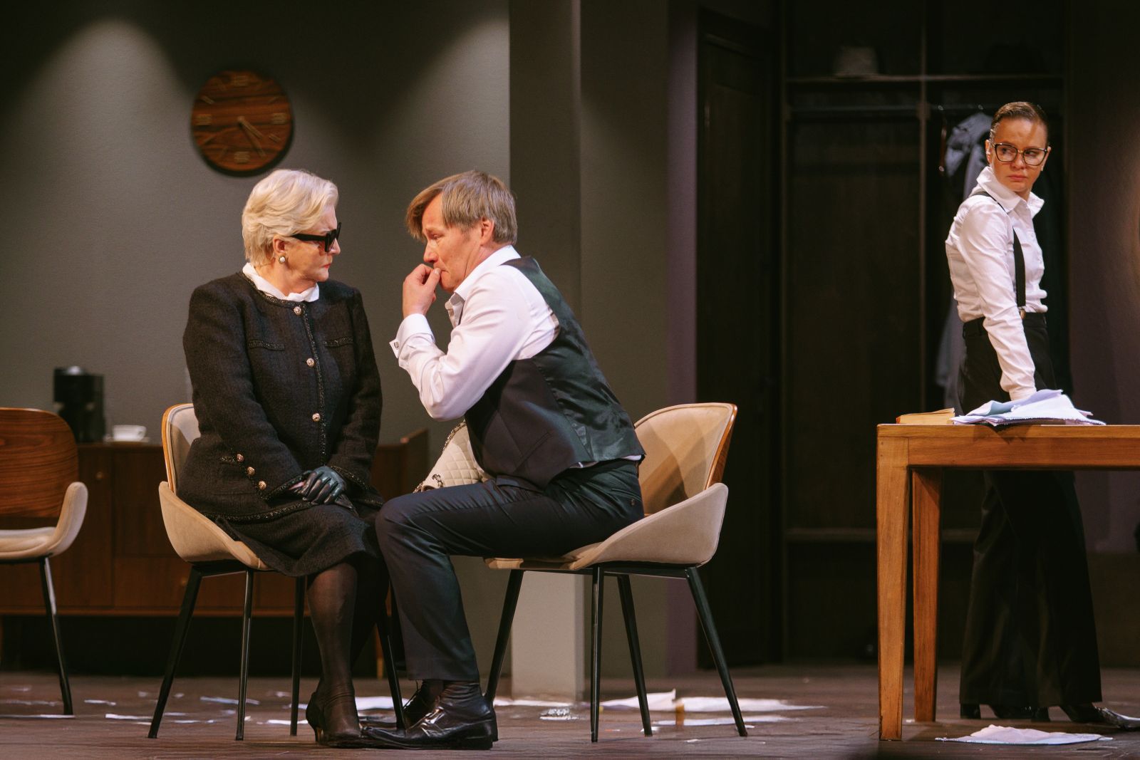 На обаяние «светлого мальчика», на удивление, легко ведётся  глава почтенного семейства Оргон (Игорь Гордин) и его стильная элегантная мама (Ольга Науменко). Мать и сын буквально очарованы подлым лицемером, в то время, когда все другие члены семьи видят его фальшь, Оргон и Пернель не замечает откровенной лжи.