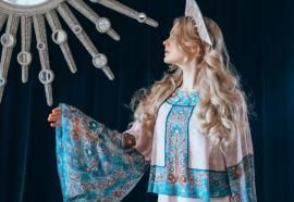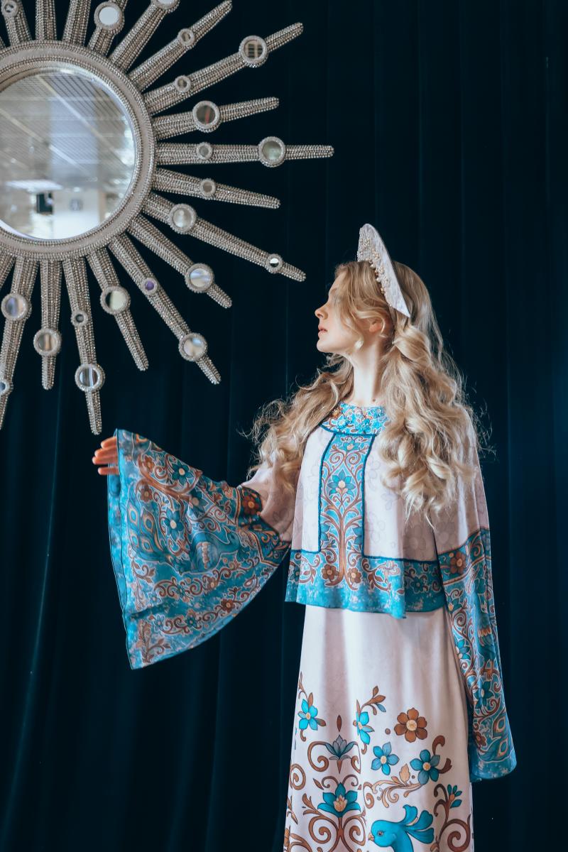 Финал стал особенно трогательным и символичным: юная актриса фильма «Огниво» Антонина Бойко закрыла показ в образе молодой новгородской княжны — одном из ключевых образов коллекции. Незадолго до выхода она поделилась, что оказаться в образе царевны — её давняя мечта.