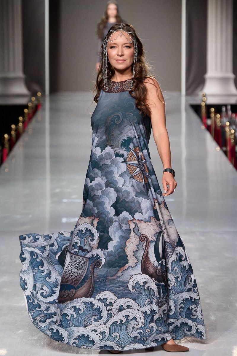Авторские принты, являющиеся ключевой частью ДНК бренда, раскрывали тему через символы — птиц, море, орнаменты и мифологические образы, создавая эмоциональное пространство, где традиция становится актуальной.