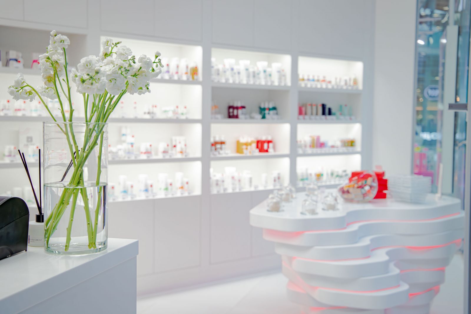 Для третьего магазина специально выбрано место, где можно душевно поговорить о косметике, протестировать средства и сразу купить полюбившиеся баночки. Новый магазин небольшой, но выдержан в том же лаконичном футуристическом стиле, что и остальные магазины собственной розницы.