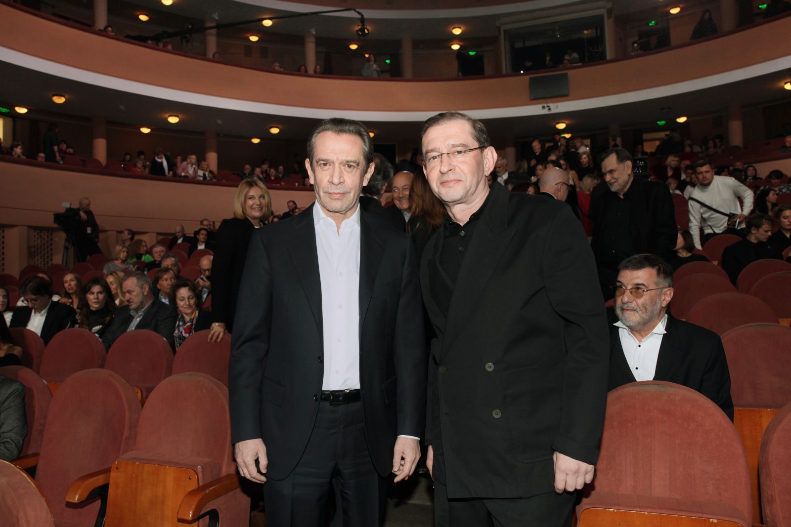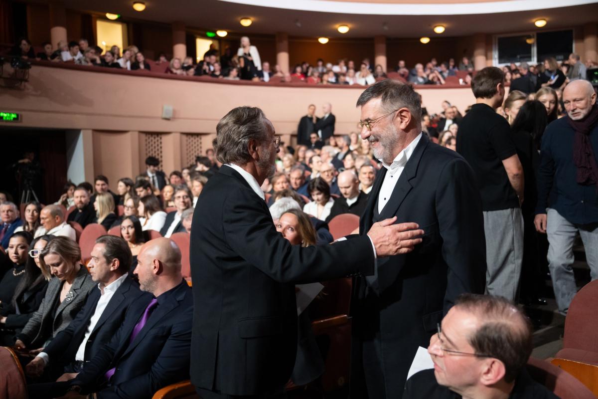 Приз победителю вручали президент киноакадемии, режиссер Андрей Кончаловский и его жена, актриса Юлия Высоцкая.