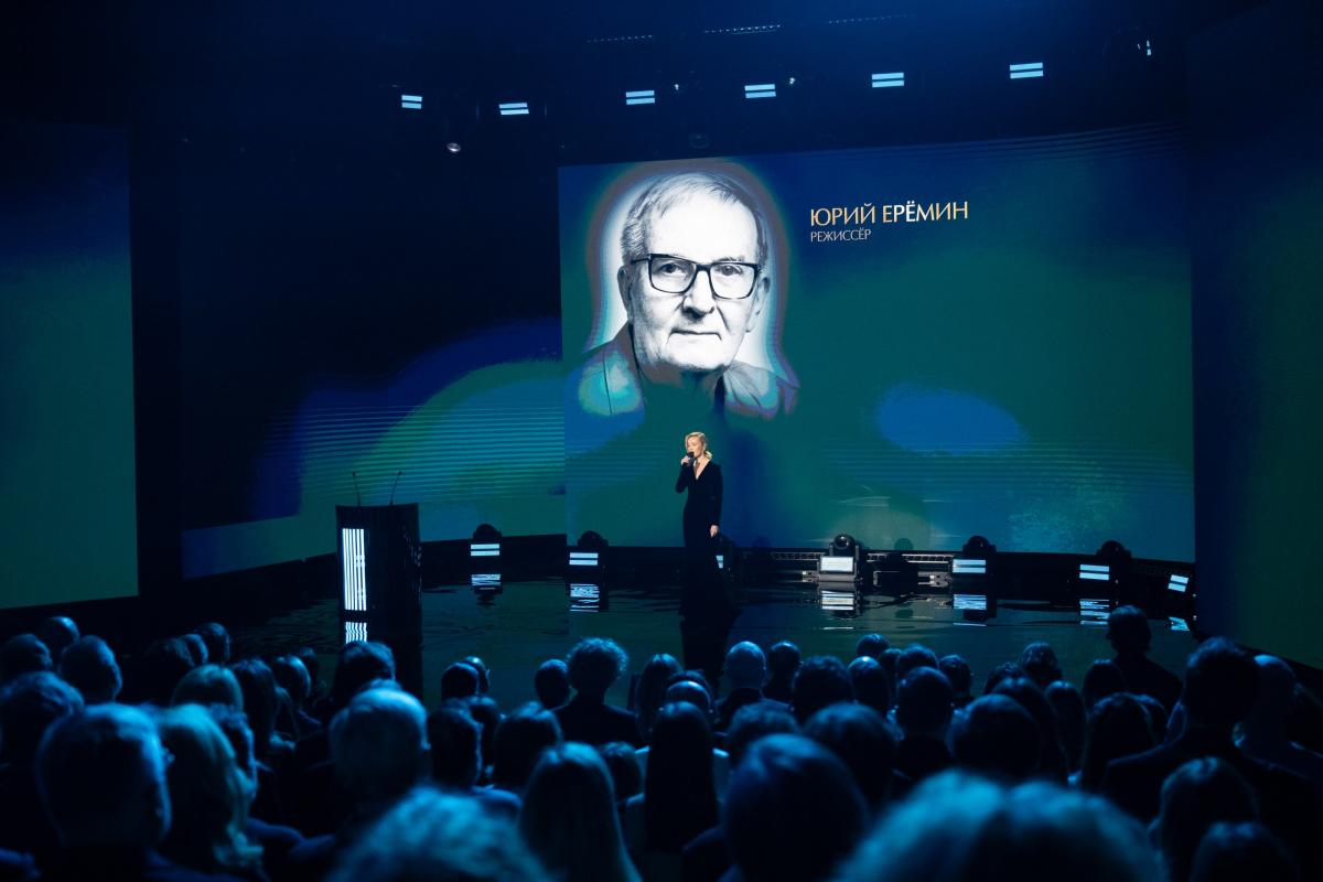 Почетную «Нику» приняла семья Игоря Золотовицкого — вдова Вера Харыбина и сыновья Алексей и Александр Золотовицкие. После этого Полина Гагарина исполнила песню «Нежность», во время которой на экране показали ролик, посвященный кинематографистам, ушедшим за последний год.