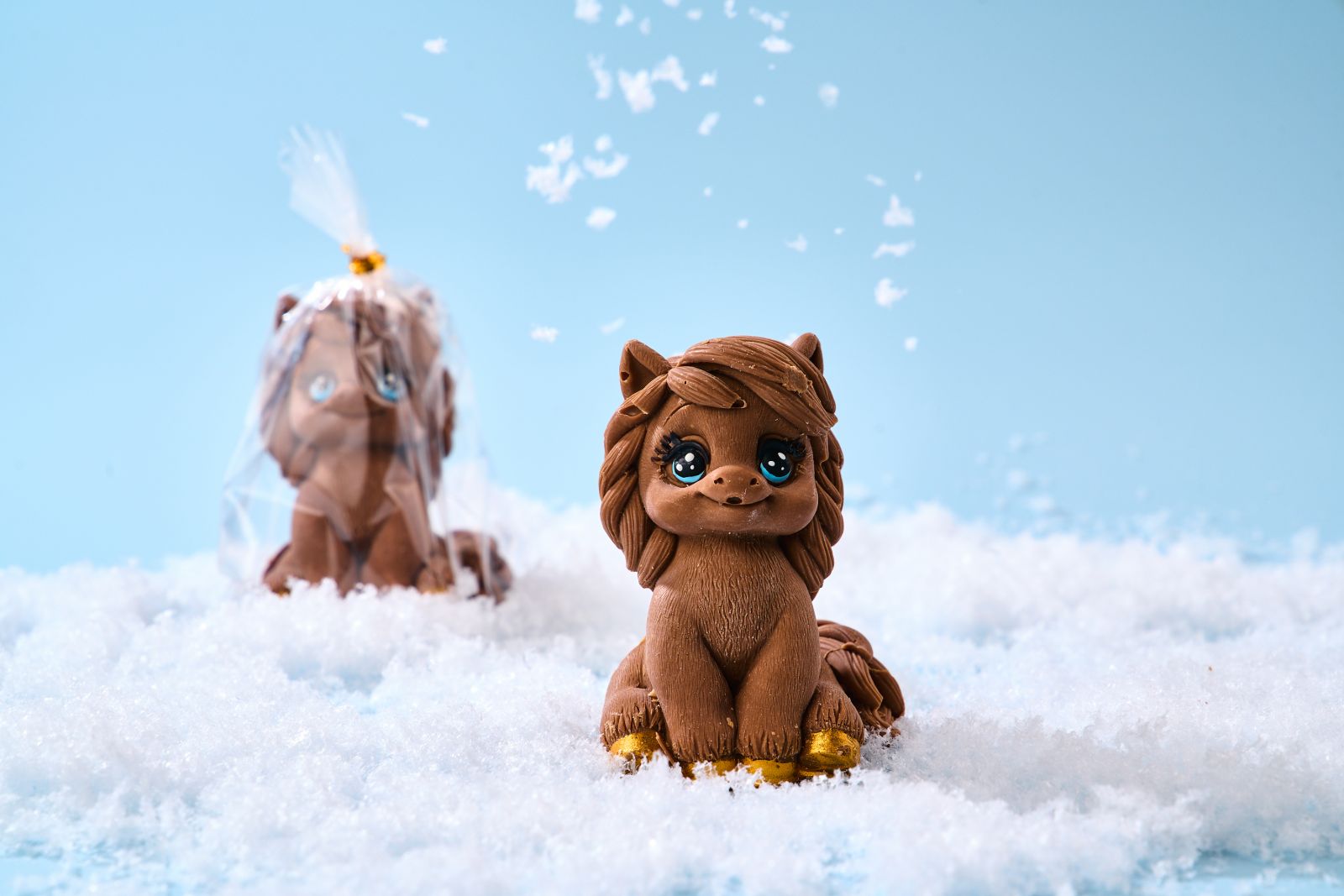 Особого внимания заслуживают фигурки ручной работы: Котенок Тоша (490 р.) и Зайчонок (540 р.) из белого бельгийского шоколада, снеговики Степа (650 р.) и Егор (590 р.), а также Лошадка (590 р.) из молочного шоколада. Высокое содержание какао-масла в шоколаде гарантирует правильную структуру жиров, усваиваемую организмом лучше, чем заменители. Фигурки полностью заполнены шоколадом, без пустот внутри, и вручную раскрашены натуральными красками.