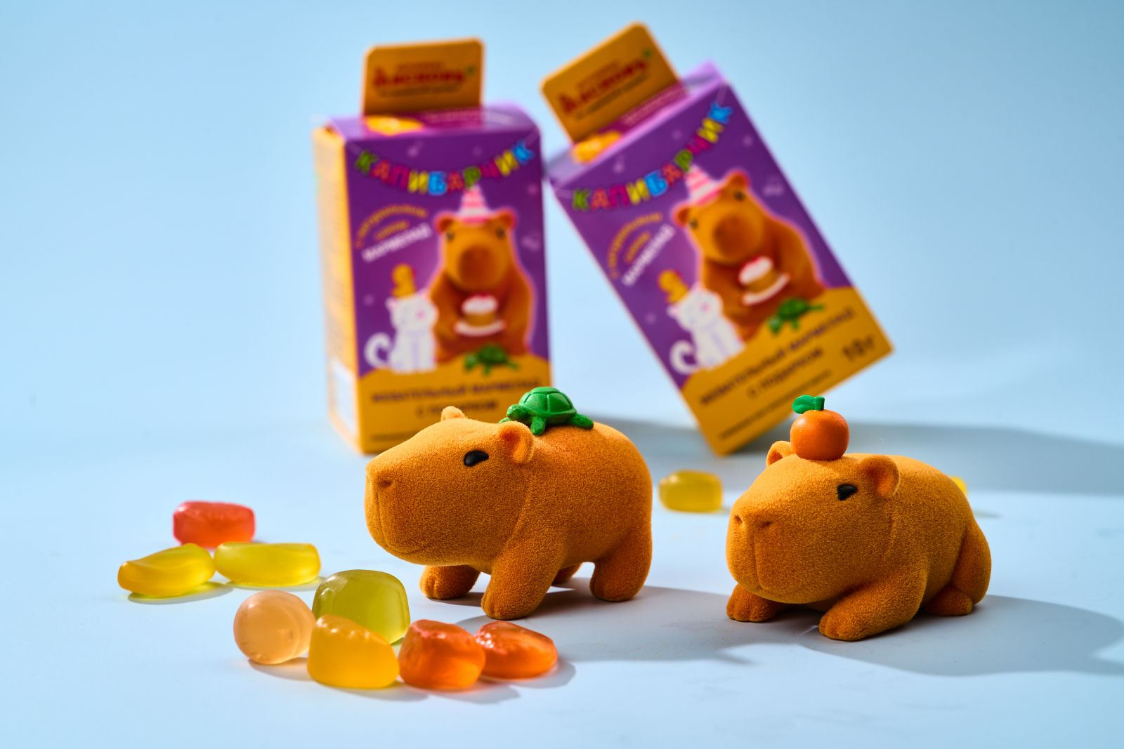 Дети и сами обратят внимание на новые десерты. Например, мармелад с чистым составом из натуральных фруктовых и ягодных соков (235 р.) понравится не только своими вкусами, ведь в каждой упаковке идет ещё и игрушка-капибара. Коллекция фигурок включает шесть разных персонажей.