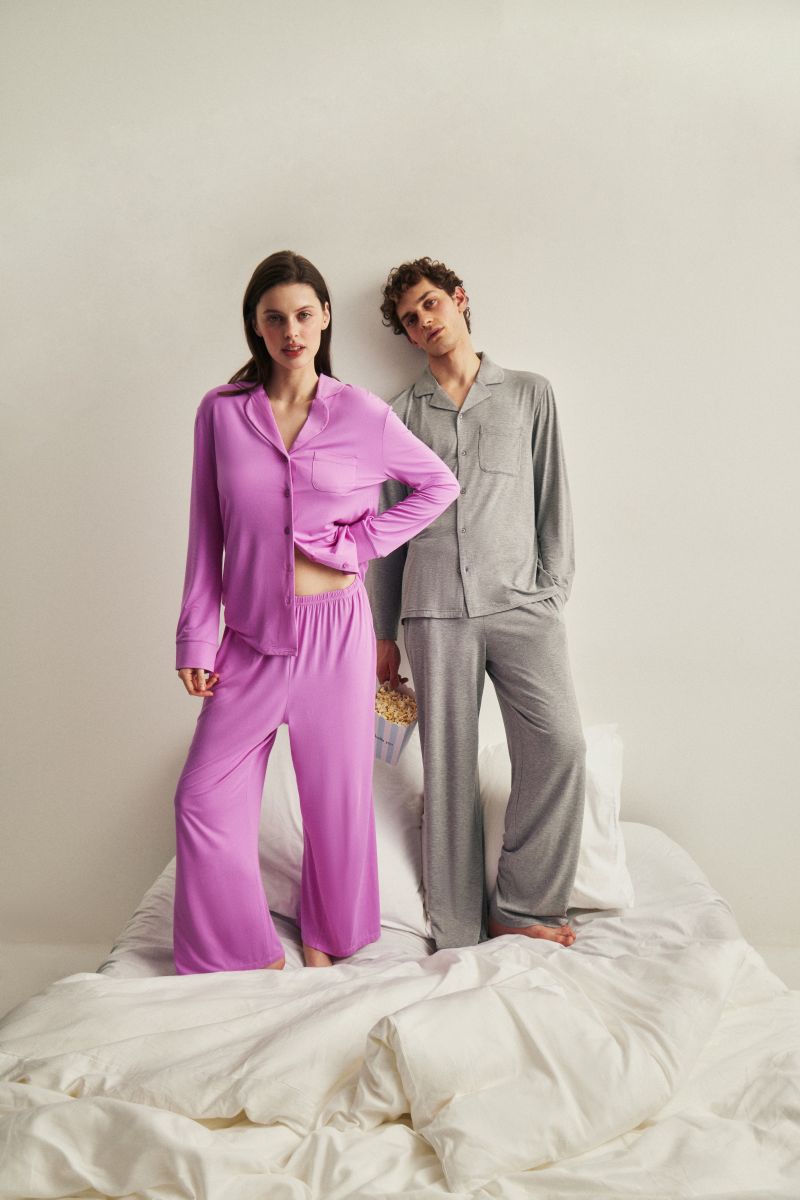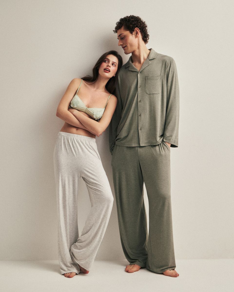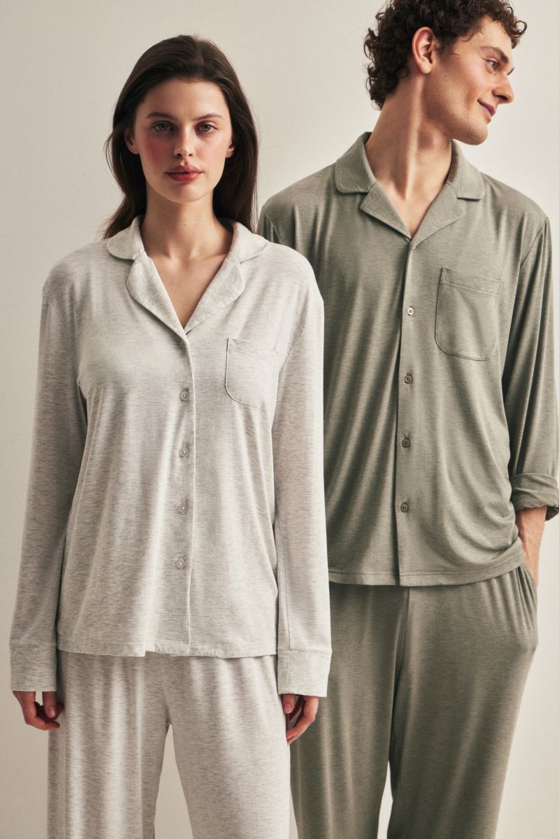 В основе Love Story — бамбуковые пижамы, один из бестселлеров belle you, теперь представленный и в мужской версии. Модели выполнены из трикотажного бамбука с добавлением эластана: материал отличается высокой мягкостью, шелковистой фактурой и хорошей воздухопроницаемостью, поддерживая комфортный микроклимат тела в течение дня и ночи. Полотно мягко адаптируется к телу, сохраняет форму и ощущение свежести, а эластан отвечает за эластичность и стабильную посадку. Продуманные лекала, свободные силуэты и лаконичные линии делают пижамы универсальными — для отдыха дома, неспешных выходных и спокойных утренних ритуалов.