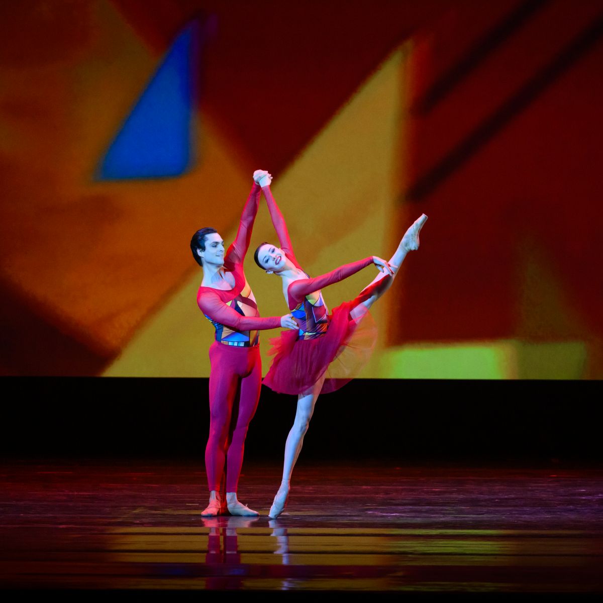 Завершил «Балетный триптих» балет-танцсимфония Дмитрия Антипова «Футаж» на темы полотен Василия Кандинского под музыку Мориса Равеля. Геометрия звука и вкус цвета стали неразрывным целым с движениями на холсте сцены. Это впечатление усиливали костюмы, созданные специально для этого балета премиальным российским брендом 21DOT12 и особым видеорядом, транслировавшимся на экранах.