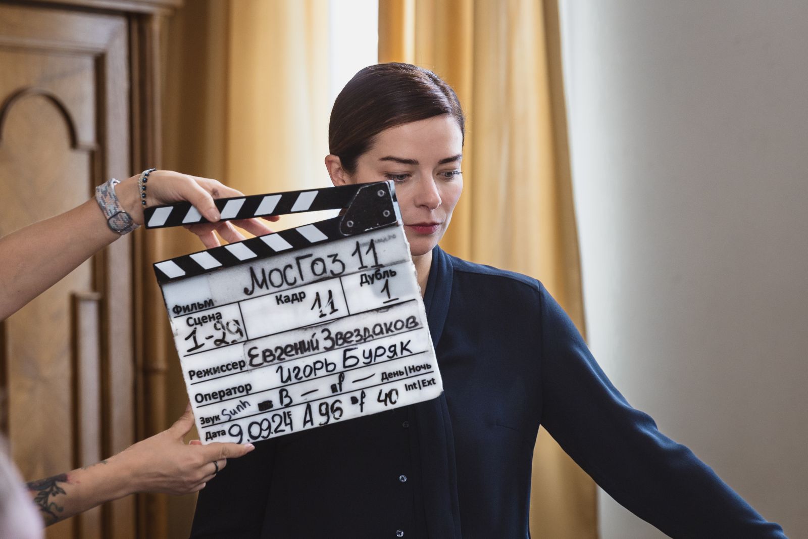 «Моя семья — большие поклонники «Мосгаза», все сезоны смотрели и бабушка, и родители. Папа — вообще фанат Андрея Смолякова. Мне кажется, молодые математики, моя героиня – одна из них, придают истории новый нерв, энергию и движение. Интересно, что я снималась в своих собственных винтажных туфлях, купленных несколько лет назад в Петербурге. Я пришла в них на примерку, и костюмеры сказали, что они идеально подходят для образа».