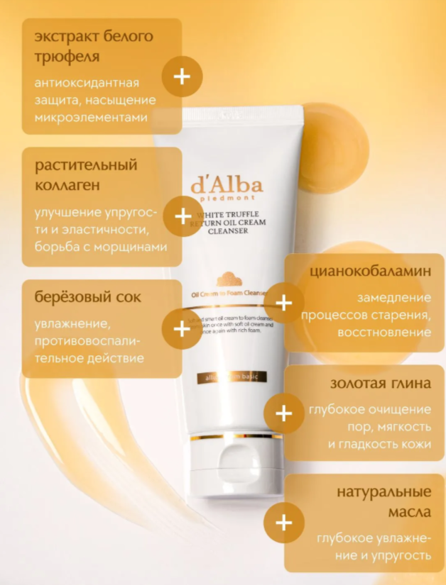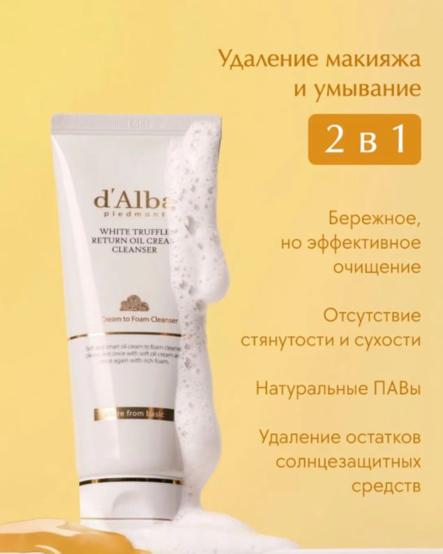 d'Alba - Масло+пенка два в одном White Truffle Return Oil Cream Cleanser (Tube)