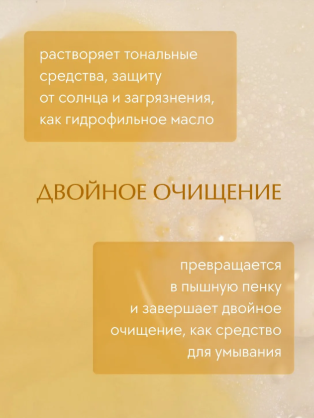 Гидрофильное масло-пенка 2 в 1 эффективно удаляет макияж и загрязнения, очищает закупоренные поры, не оставляя чувства стянутости на коже. Комплекс натуральных масел (макадамии, облепихи, авокадо, дерева камелии) питает кожу. Применение: нанесите масло-пенку на сухую кожу и массируйте до образования кремовой текстуры, затем добавьте немного воды и продолжайте массировать. Когда крем превратится в пену, смойте её тёплой водой.