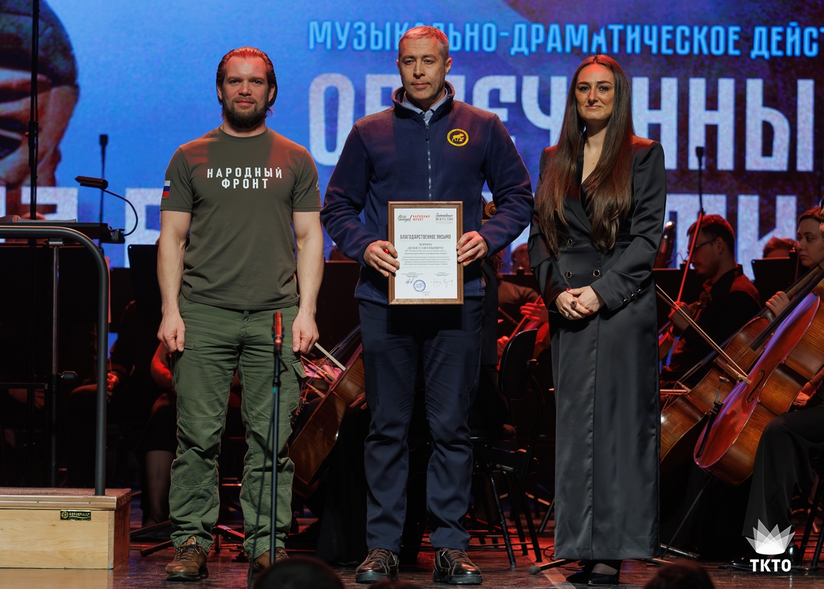 Перед началом концерта состоялась церемония вручения благодарностей активистам Тюменской области за помощь защитникам Отечества и мирным жителям Донбасса. В награждении приняли участие руководитель регионального исполкома Общероссийского народного фронта Роман Чуйко и композитор, генеральный продюсер проекта Алина Небыкова.