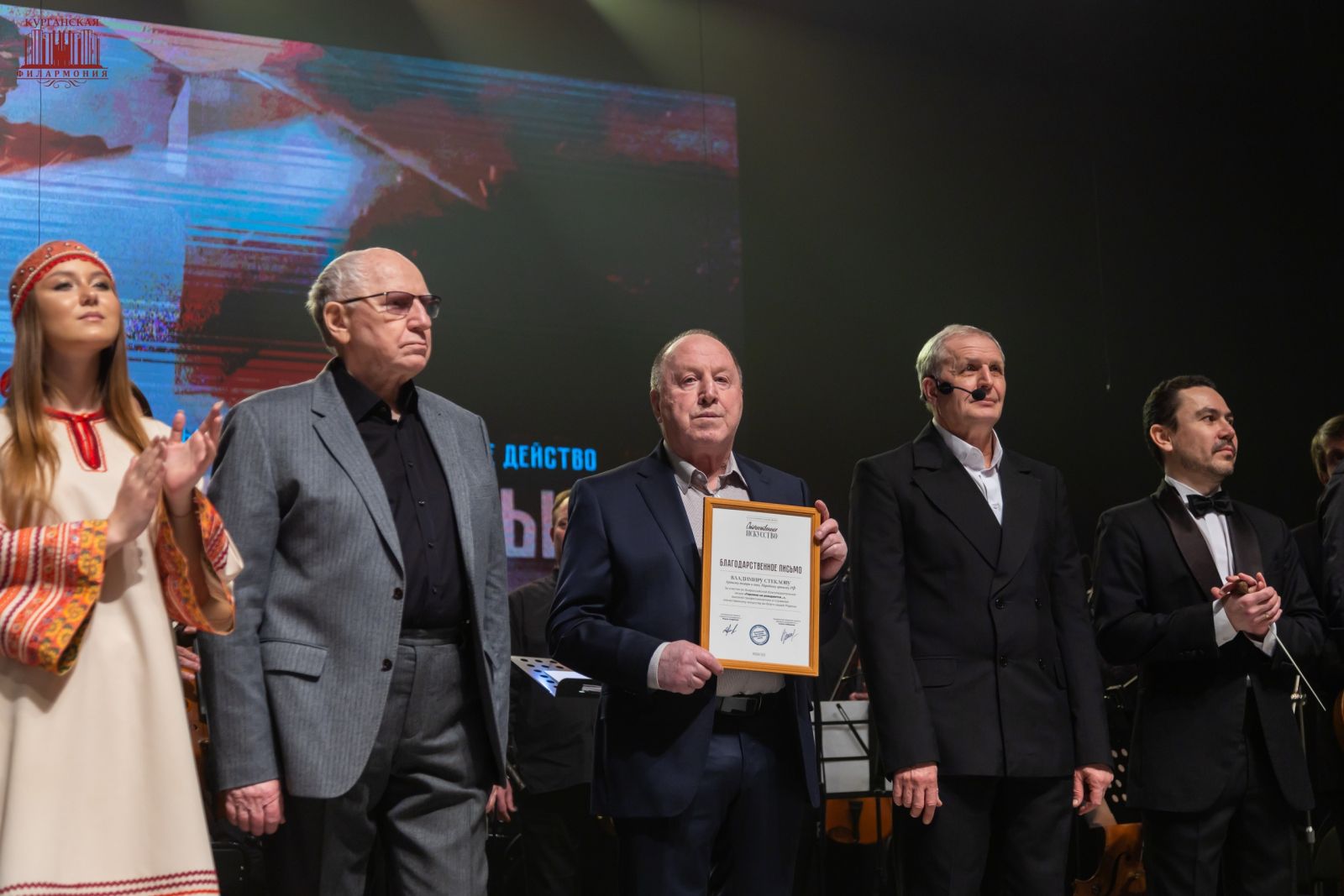 В программе приняли участие народные артисты России Валерий Баринов, Владимир Стеклов, солист Большого театра России, лауреат госпремии по культуре Президента РФ Николай Диденко, звезда мирового балета Иван Васильев, виолончелист Фёдор Амосов, исполнительница народного вокала Дарья Маслова, а также творческие силы региона - Зауральский симфонический оркестр под управлением дирижёра Алексея Смирнова, Академический смешанный хор Курганского областного музыкального колледжа им. Д. Д. Шостаковича, Хоровая капелла Тюменской филармонии, актёры Курганского театра драмы, среди которых заслуженный артист РФ Сергей Радьков, Иван Шалиманов, Алишер Искандаров и Никита Юмин, а также ансамбль народного танца «Улыбка» и ансамбль классического танца «Мечта».
