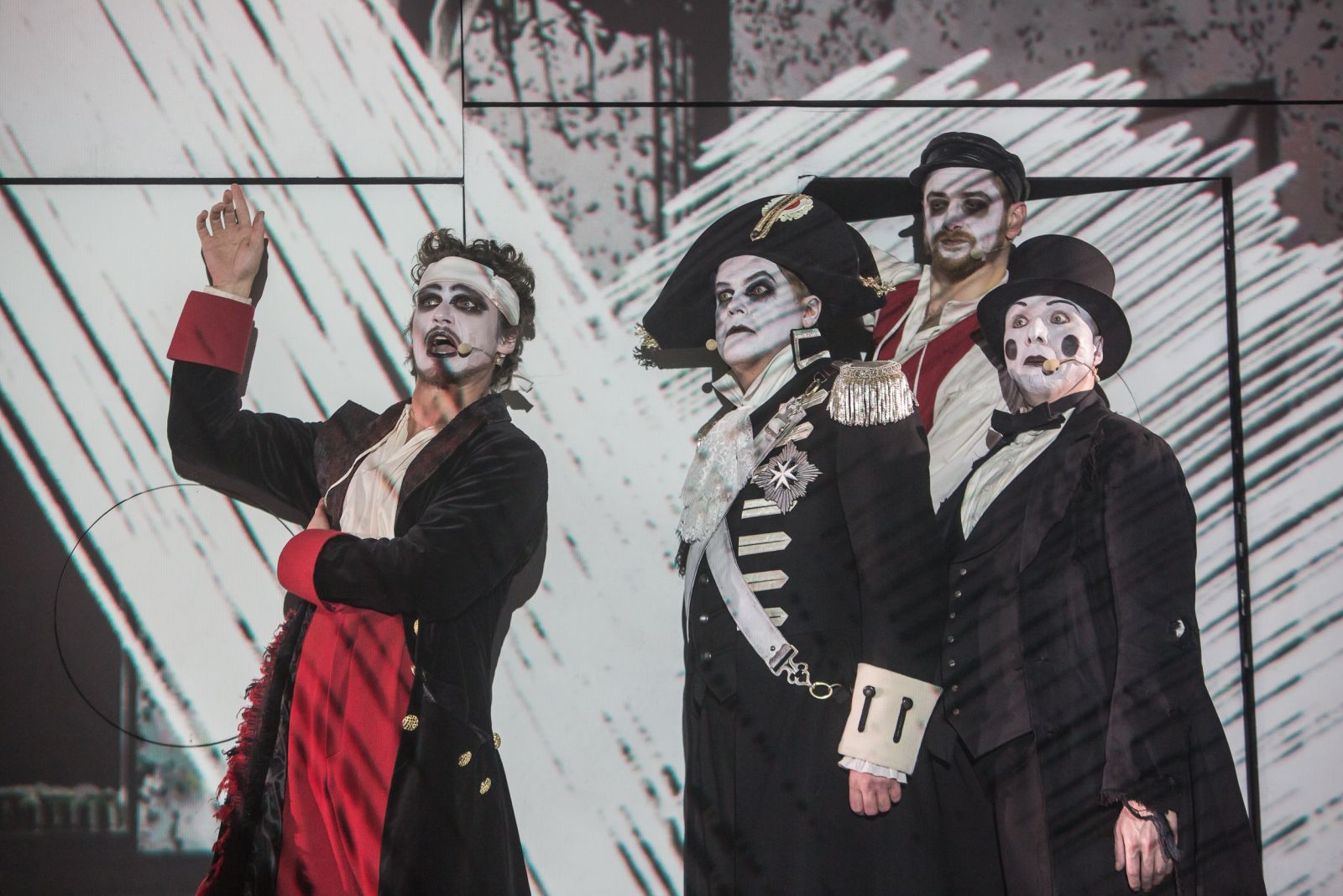 «Работая над костюмами и над образами персонажей, я отталкивался от того, что в пьесе Гоголя нет положительных героев, они все как будто морально мертвы, – говорит художник Антон Левдиков. – Захотелось показать это в какой-то комиксовой реальности. Все персонажи у нас – такие полувампиры, их нутро выражено визуально таким образом. Если говорить о подходе, то он не новый, первооткрыватели – «Студия 1927» из Англии, мы приняли у них эстафету и показали свое видение этой эстетики через нашу культуру, на основе гоголевского «Ревизора».