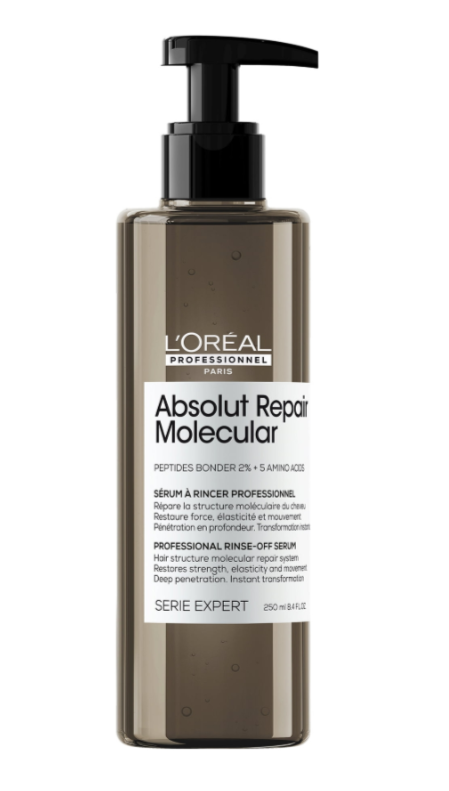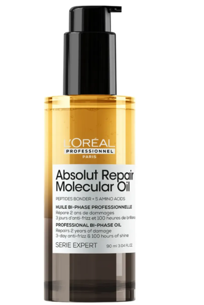 Двухфазное масло L'Oreal Professionnel Serie Expert Absolut Repair Molecular для восстановления волос, которое обеспечивает мгновенное питание и интенсивное восстановление волос без утяжеления. Придает волосам блеск на срок до 100 часов и невероятное сияние. Обогащенное пептидным бондером и комплексом из 5 незаменимых аминокислот масло объединяет водную и масляную фазы. Водная фаза проникает в волокно волоса, восстанавливает его макро-молекулярную структуру, в то время как масляная фаза создает защитный барьер на поверхности – придает блеск, мягкость и здоровый вид. Подходит для всех типов волос.