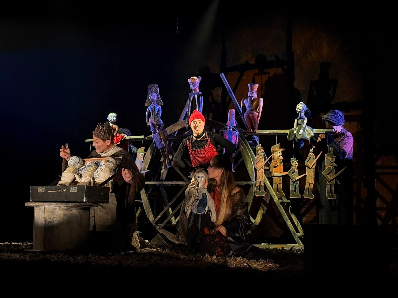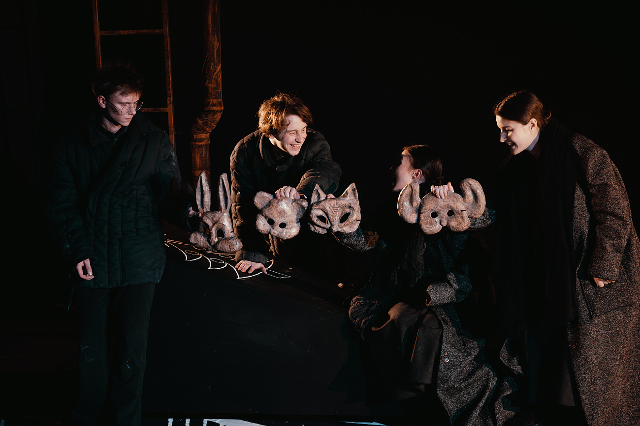 В спектакле задействован театр кукол в сочетании с актерской игрой драматического театра.