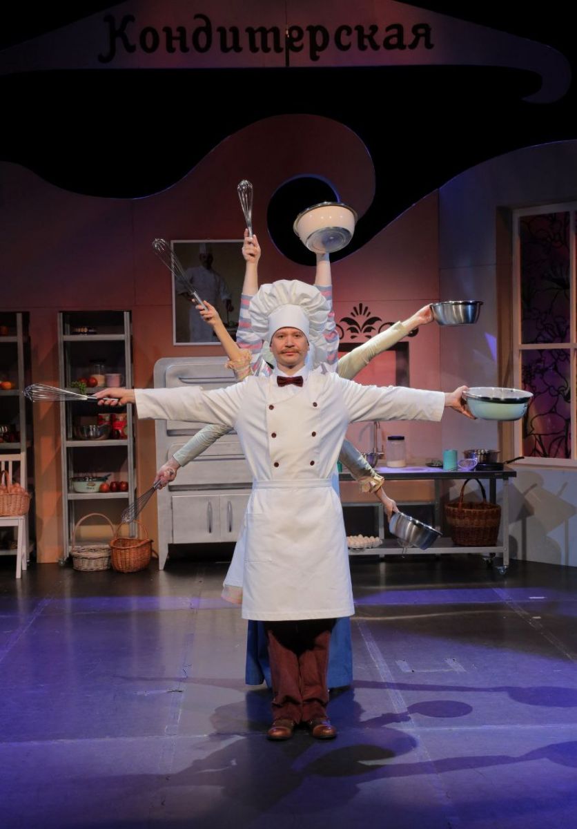Спектакль на Новой сцене театра – "Переполох в кондитерской" режиссера Ольги Сидоркевич – музыкально-кулинарное приключение для всей семьи. В "прямом эфире" разворачивается история о том, как самые сжатые сроки сделать самый лучший торт для маминого дня рождения.