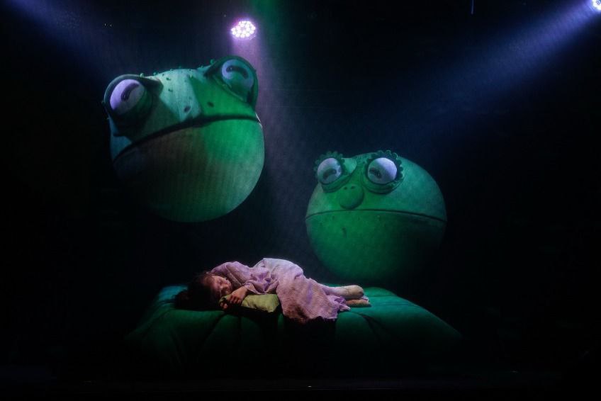 Режиссер Олег Лабозин (младший) собрал в спектакле все виды кукол: планшетные, теневые, ростовые, тростевые и маппет-куклы.