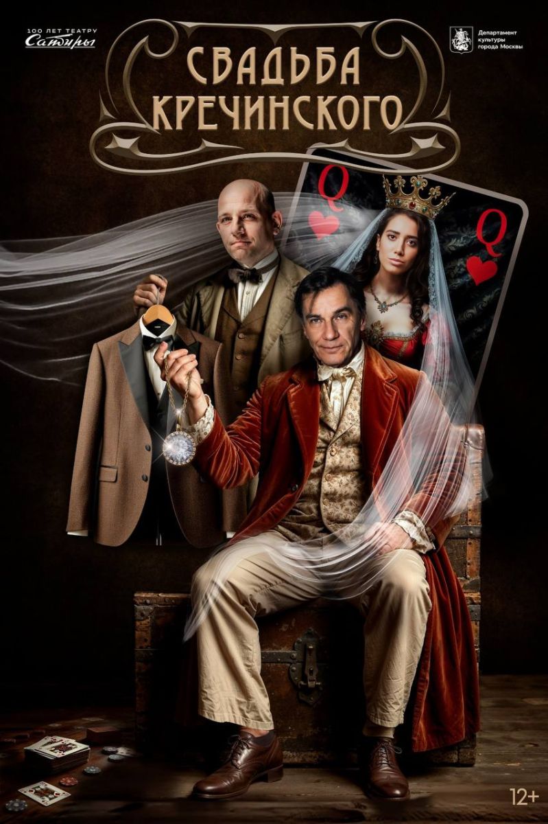 «Свадьба Кречинского» (12+), 7, 8, 26 и 27 ноября в 19:00, режиссёр-постановщик Евгений Герасимов, Основная сцена Театра Сатиры, продолжительность — 2 часа с антрактом.