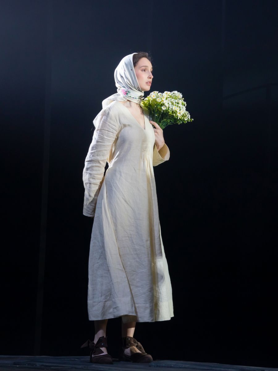 Зеркальный пол символизирует обрывистый берег глубокой реки, в пучине которой так легко утонуть, а цветущий сад, по которому нравится гулять беременной Авдотье, скрывается где-то за периметром (его на сцене нет), но всё настолько образно, что, кажется, можно увидеть благоухающие деревья… В этой туманной зыбкости открывается много проекций в каждом герое.