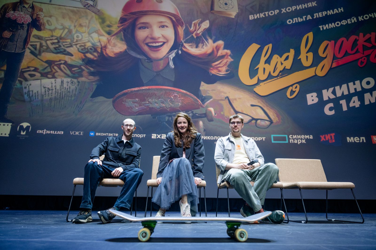 Раз уж главным предметом семейных кино-дрязг стал скейт, то и премьера не могла обойтись без этого атрибута уличной субкультуры. Команда проекта привезла на мероприятие несколько скейтов, которые были задействованы в съемках, Ольга Лерман оставила на них свой автограф и доски были вручены победителям розыгрышей, которые проводились в соцсетях студии «Свободное кино» и «Наше кино».