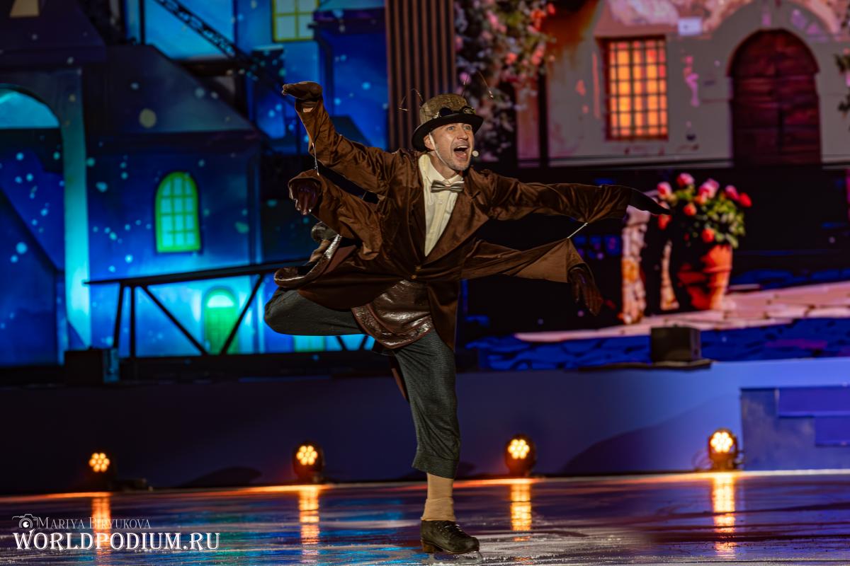 Алексея Ягудина мы неслучайно оставили на «десерт» в нашем рассказе о колоритных героях «Буратино» – в этом спектакле фигурист, артист и ведущий предстаёт в роли Таракана-Рассказчика: он вживую озвучивает реплики своего героя и много общается с публикой, шутит и иронизирует, конечно же, не выходя из образа и не нарушая сюжетную концепцию.