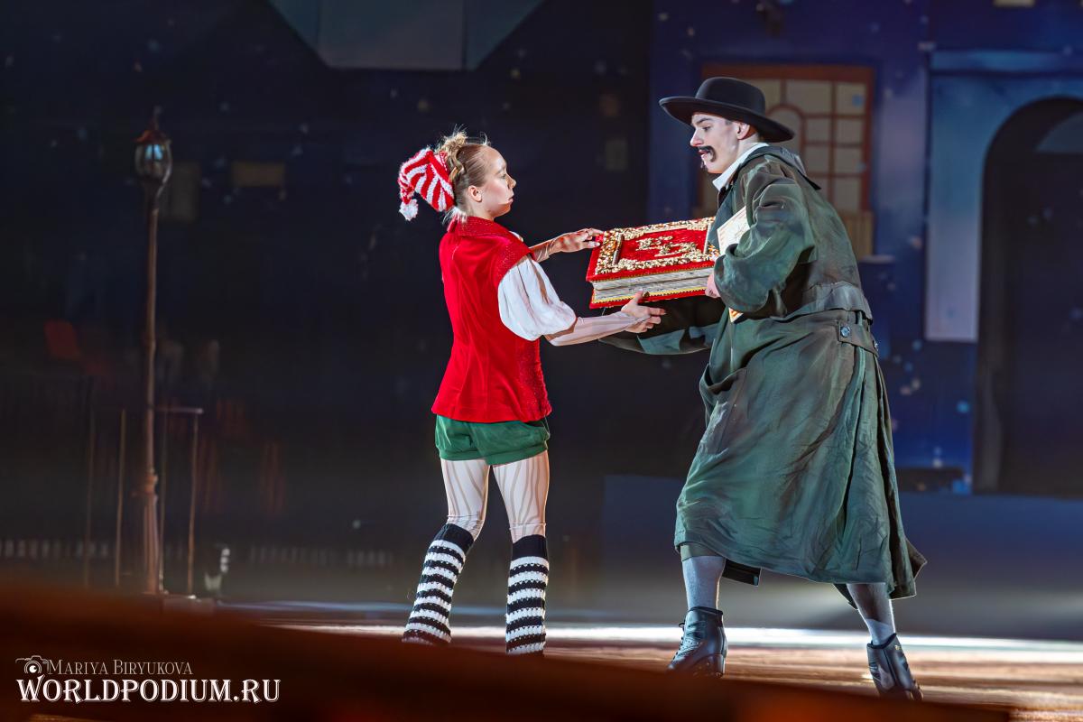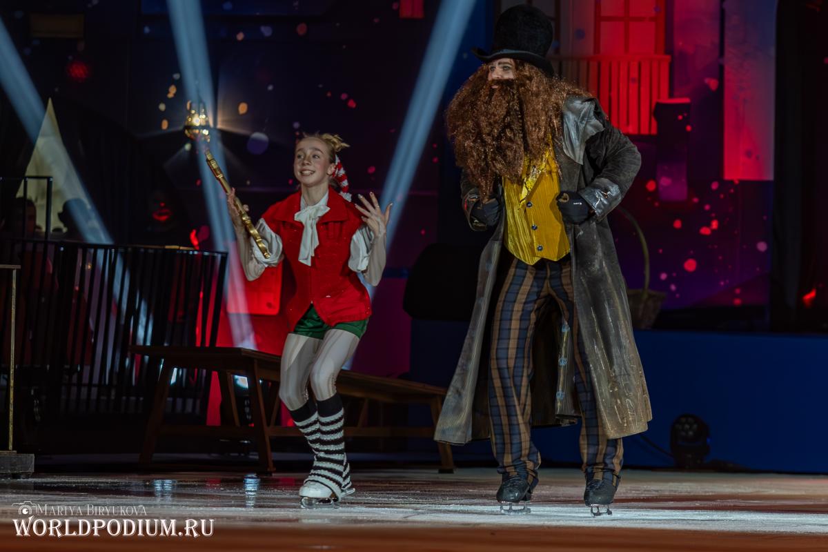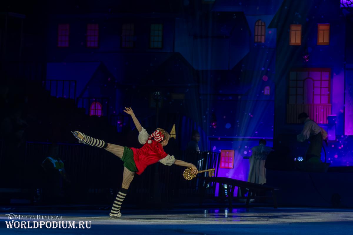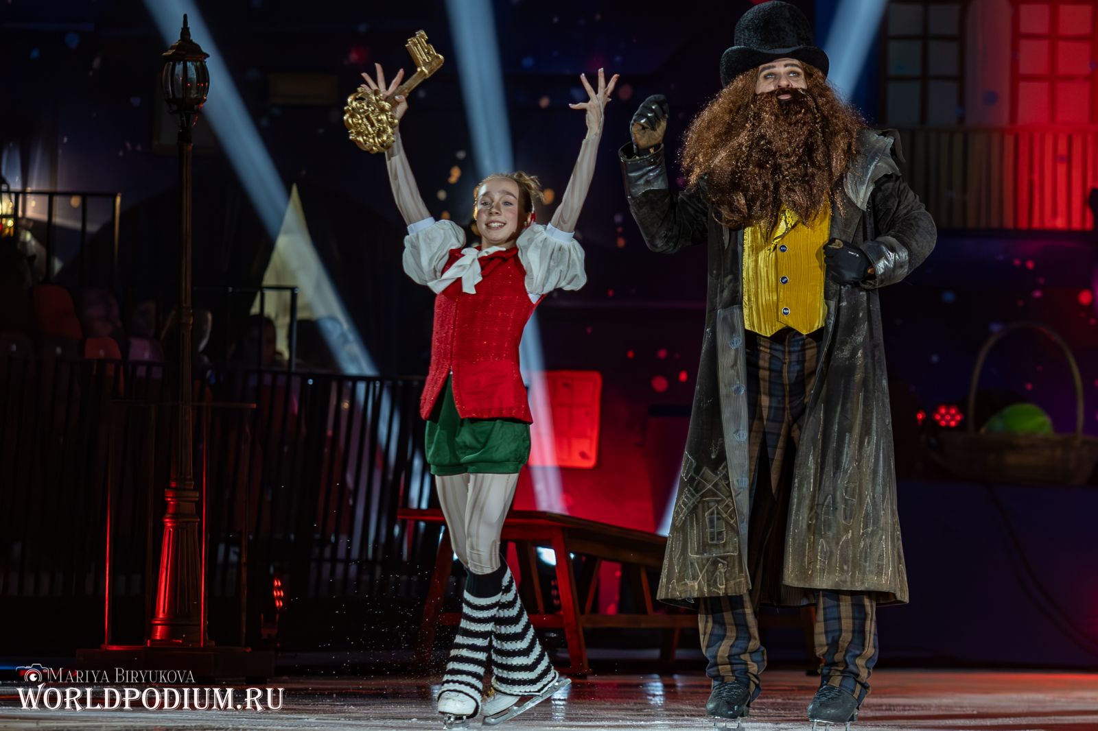 Роль Буратино исполняет Серебряный призёр Чемпионата России, победительница и призер этапов юношеских гран-при, и победительница взрослого Гран-при России Алиса Двоеглазова.