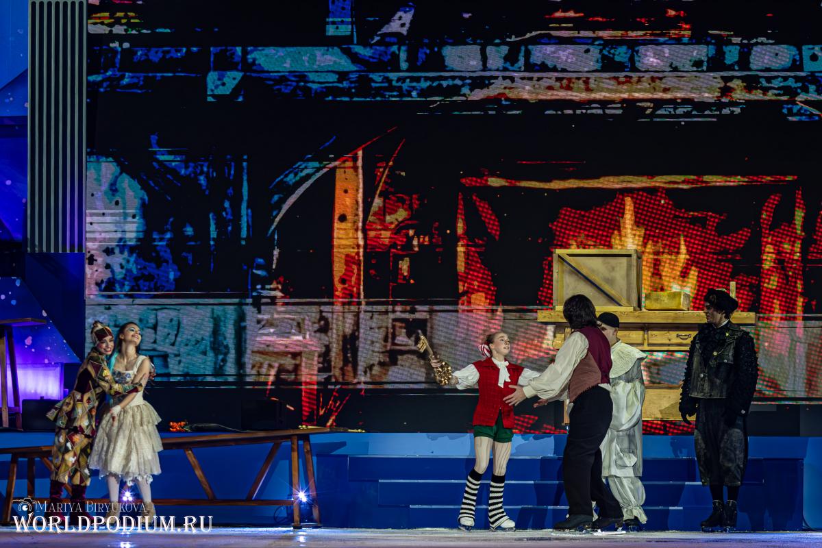 Сценография и экраны точно визуализируют драматургию: «Буратино» - не просто шоу, а полноценный ледовый мюзикл.