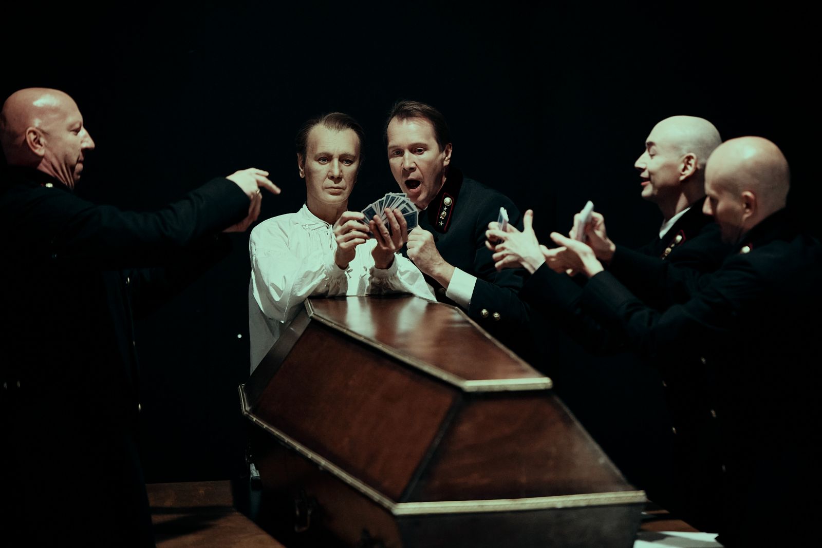 В спектакле заняты: Евгений Миронов, Леонид Тимцуник, Марьяна Спивак, Кирилл Быркин, Антон Ескин, Владимир Белостоцкий, Глафира Лебедева, Елена Морозова, Кирилл Шварценберг, Александр Сирин, и другие.