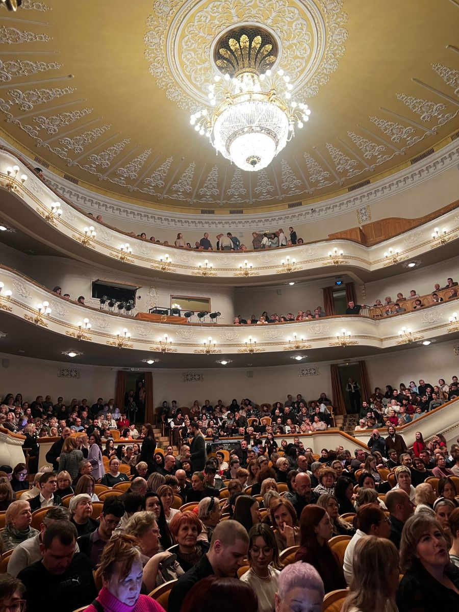 На сцене Музыкально-драматического театра имени М.М. Бровуна дважды была показана комедия Эжена Скриба «Пуф, или Ложь и истина» в постановке Аси Князевой. В то же самое время на Садовой два раза сыгран творческий вечер Эльдара Трамова «Истории любви». В Донецке Вахтанговцев встретили полные залы. В Музыкально-драматическом театре все 700 мест были заняты. Заполнять зал полностью разрешили только с сентября, до этого лишь на треть. В целях безопасности.