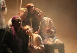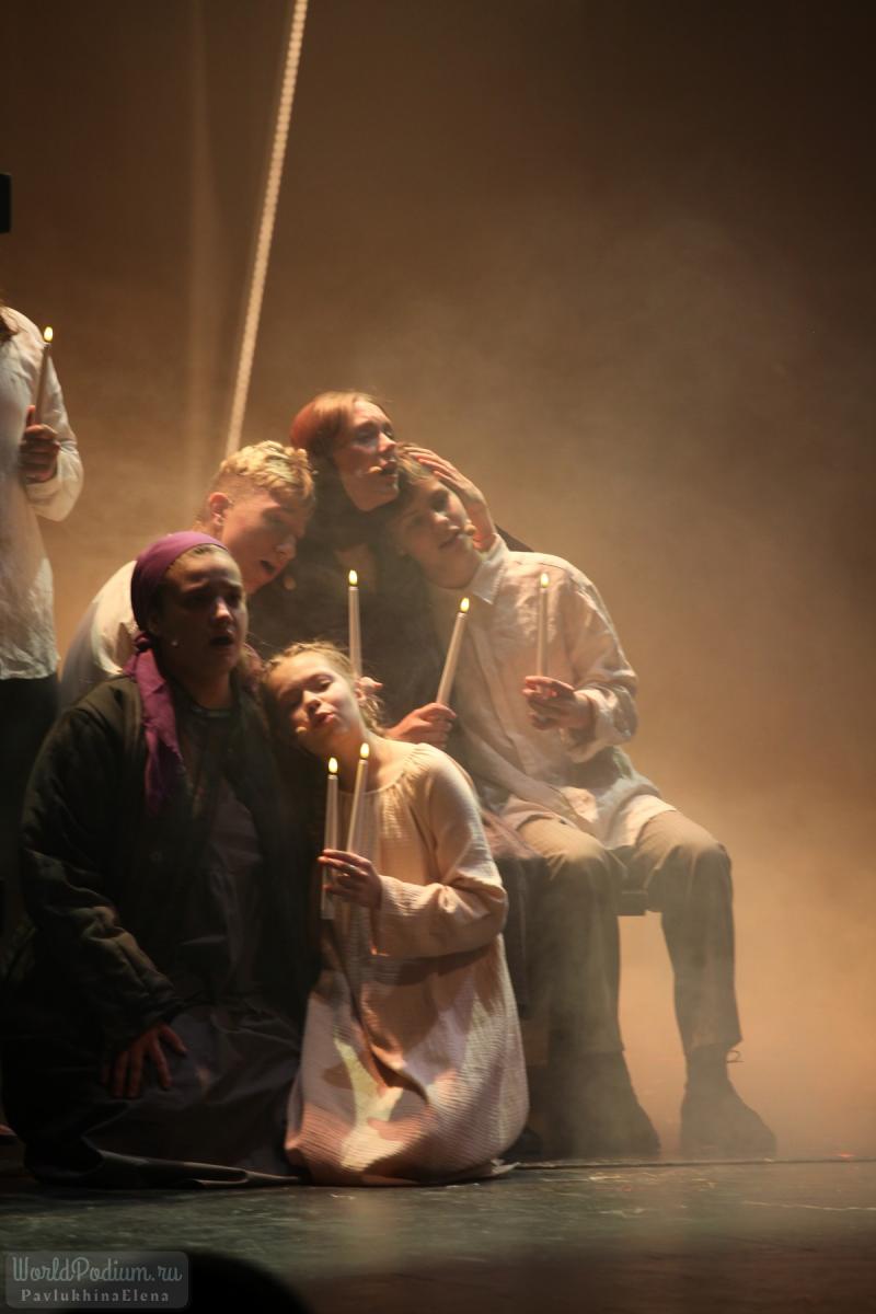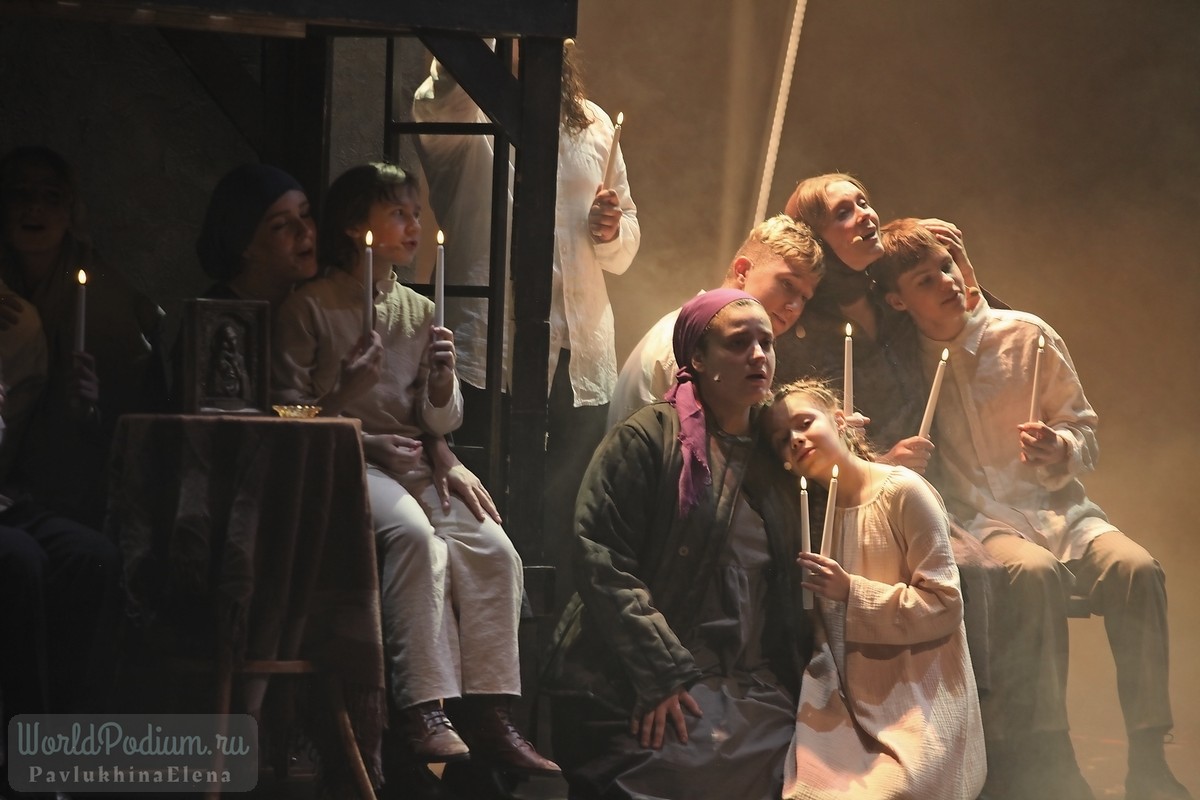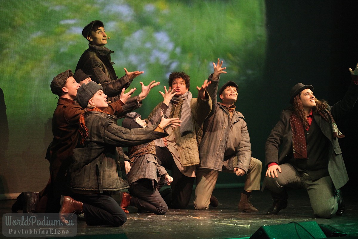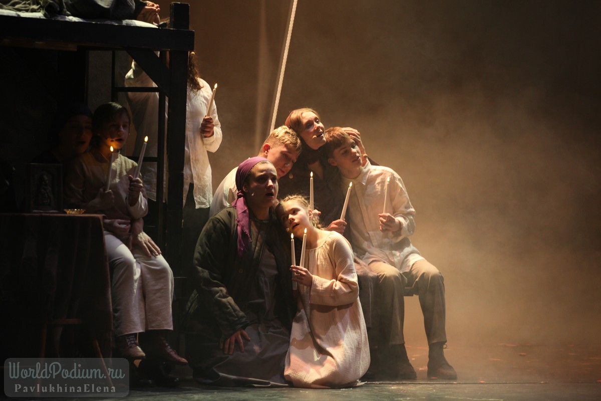 Отдельно отметим исполнителя роли Малыша (в нашем фоторепортаже – Серафим Саломатников, в другом составе – Григорий Дружинин). Детская наивность и непосредственность, находчивость и бесстрашие Малыша восхищают. То, с каким трогательным трепетом более старшие подростки заботятся о своём новом друге, вдохновляет и умиляет, и это тоже очень важная и нужная часть постановки: чуткость, внимание и забота о ближнем.