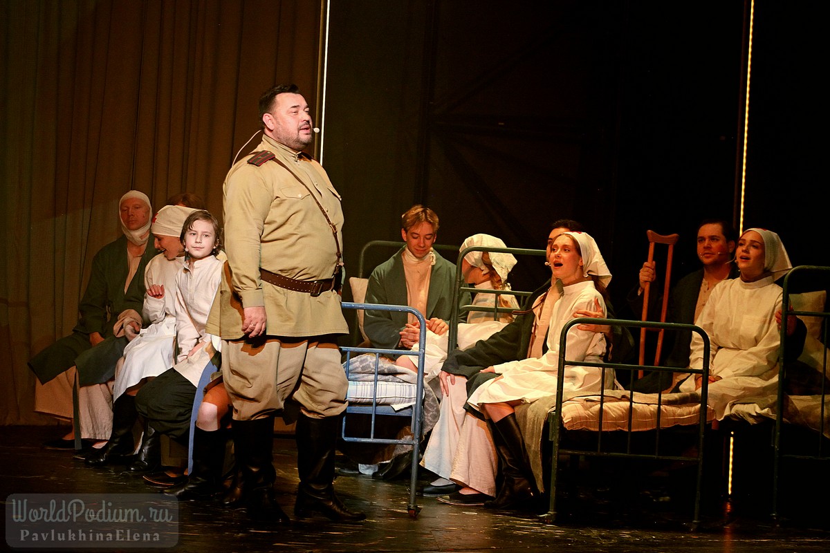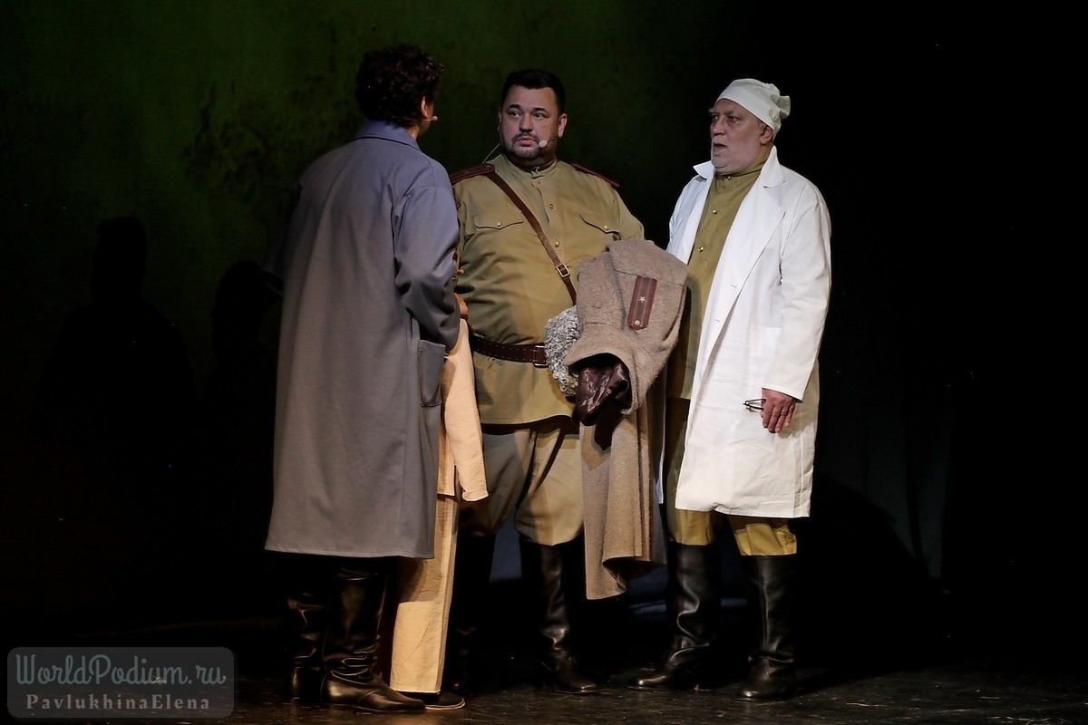 Сам Сергей Жуков предстаёт в образе известного артиста, который выступает в прифронтовом госпитале для раненых бойцов. В другом составе этого героя воплощает актёр Московского Губернского театра Сергей Вершинин. Этот герой, хоть и не является главным, вносит важную лепту в драматургию действия и отдаёт дань памяти всем тем артистам, кто поддерживал солдат на фронтах, рискуя жизнью, поднимал боевой дух и дарил минуты любви и тепла в адском пекле смертельной схватки.