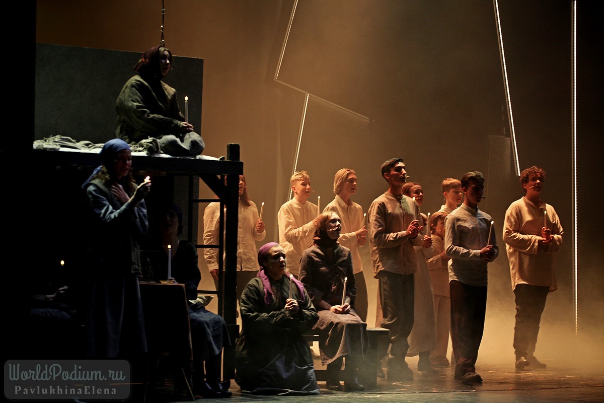 Музыкальная палитра спектакля многогранна – от пронзительных лиричных баллад до модного хип-хопа, фолковых мотивов и исповедальных молитв.