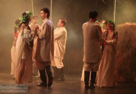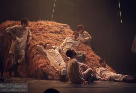 Хореограф-постановщик спектакля – Сергей Мандрик. Костюмы Евгении Швец очень тонко и точно отражают эстетику спектакля – модные луки юных тинейджеров разительно отличаются от простой аскетичной одежды наших предков. И в этом заложен не только визуальный, но и ментальный смысл: счастье точно не в новом телефоне или красивом наряде, счастье – в мире и любви, в добре и созидании.