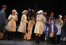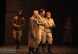 Ансамблевые сцены спектакля тоже выше всяких похвал! Трудолюбивые парни и девушки, работающие в поле, отважные солдаты-партизаны и заботливые медсёстры, пленники фашистов, которые свято верят, что преодолеют все испытания, доживут до Победы, вновь увидят и обнимут родных и близких.