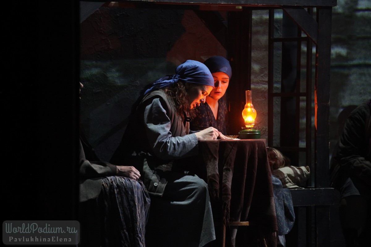 То, что спектакль выстроен на контрасте нашего времени и роковых 40-ых, очень сильный ход, который, словно мостик между прошлым, настоящим и будущим, помогает понять и прочувствовать те незыблемые смыслы, о которых говорит эта пронзительная музыкально-драматическая постановка. Современные музыкальные и визуальные решения в постановке Нины Чусовой гармонично и органично синхронизированы с трагической истории нашей страны, которую мы обязаны помнить.