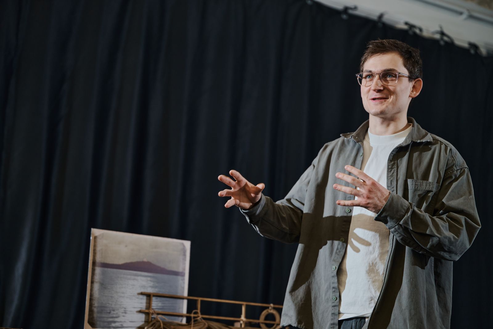 Псевдодокументальный спектакль - постановку Елизаветы Бондарь «История одной фотографии» (18+) – представили в камерном пространстве театра Наций. Историю о том, как фотограф всю жизнь пытался запечатлеть своего кумира – Максима Горького, где драматический театр сплетается с кукольным, рассказывают и показывают через две параллельные сюжетные линии.