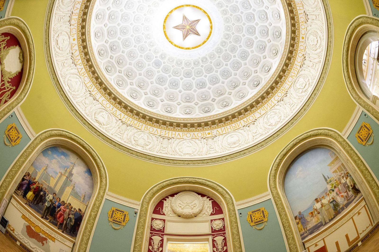 Этой весной ВДНХ дарит своим гостям редкую возможность заглянуть в закулисье павильона № 1 «Центральный» и увидеть главный символ Выставки во всем его великолепии — свободным от выставочных музейных проектов. После масштабной реставрации, которая завершилась в конце 2024 года, павильон развивается как флагман показа национального искусства на ВДНХ. До 1 февраля в залах «Центрального» размещалась выставка «Образ Москвы в русском искусстве из коллекции Государственного Русского музея», а ранее — экспозиция Государственной Третьяковской галереи «#ТретьяковкаНаВДНХ». Сейчас, в период подготовки к новому музейному проекту, у посетителей появилась уникальная возможность рассмотреть величественные интерьеры павильона без выставочных конструкций.