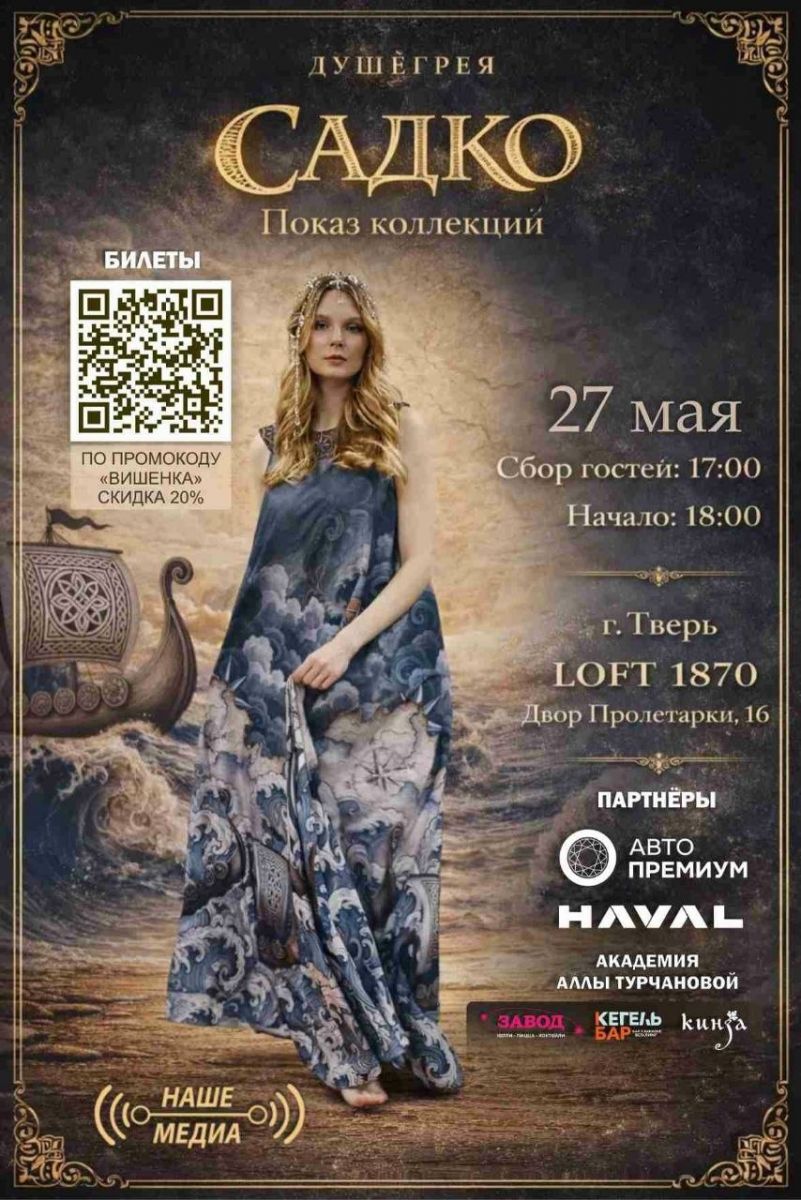 27 мая в Твери в пространстве LOFT 1870 бренд «Душегрея» при поддержке агентства «Наше Медиа» представит коллекцию-трилогию «Садко» —визуальное высказывание через моду о пути и выборе главного героя, в котором многие узнают себя. Специальный гость показа – известная актриса театра и кино Серафима Низовская откроет дефиле и исполнит две свои композиции.