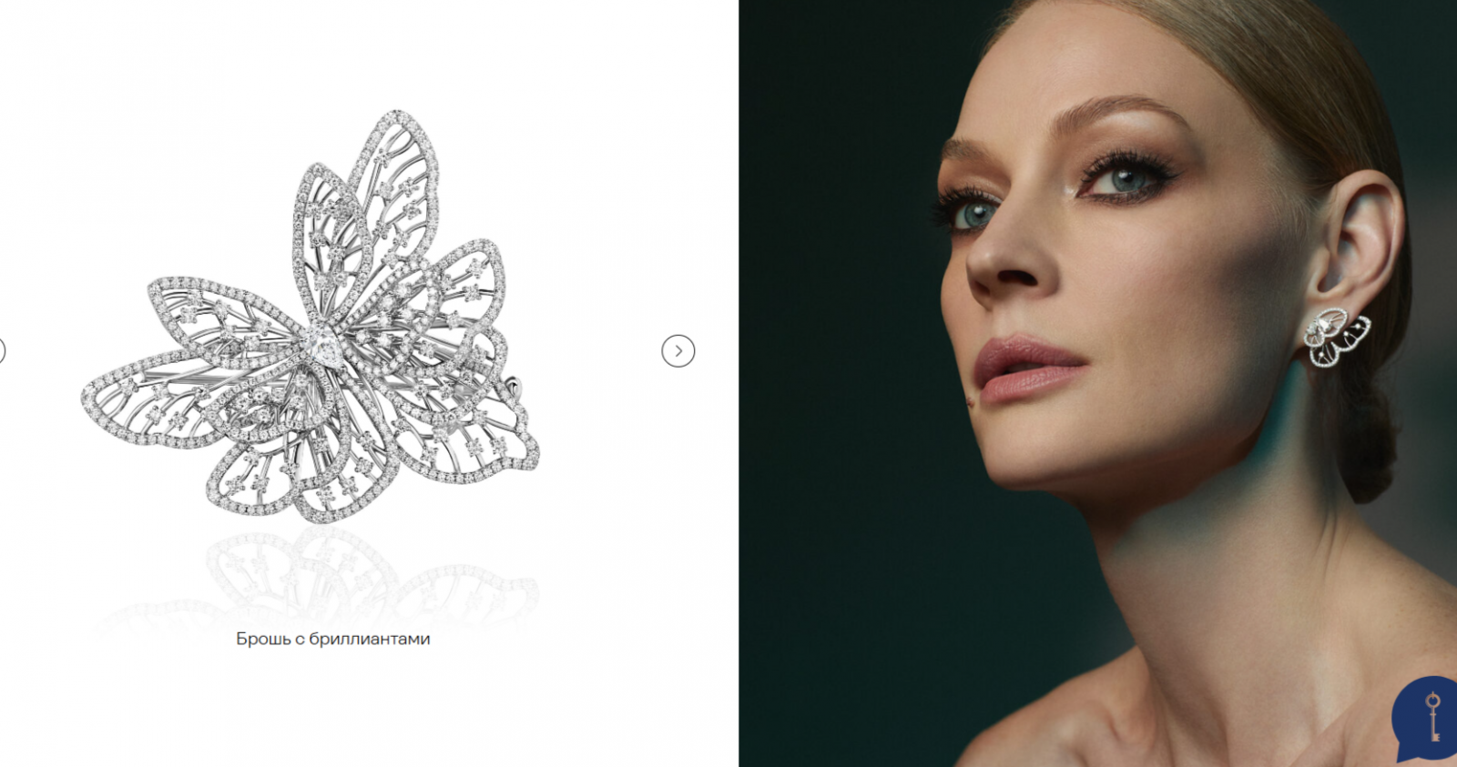 Лейтмотивом коллекции с бриллиантами стали вспорхнувшие мириады бабочек, как облако тончайших лепестков устремляются ввысь, растворясь в небесной лазури, они становятся похожи на трепещущий на ветру сказочный цветок. Эта неповторимая, но все же уловимая легкость — она часть стилистики ювелирного дома, нашла свое отражение в произведениях мастеров-ювелиров, где каждая деталь — гимн легкости и красоте природы.